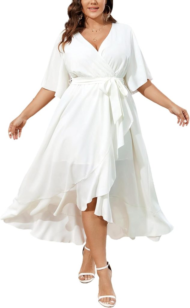 wedding dressesSCOMCHIC Women Plus Size Maxi Dress Short Sleeve Wrap V Neck High Low Split Ruffle Long Dress admin / 23 October 2025