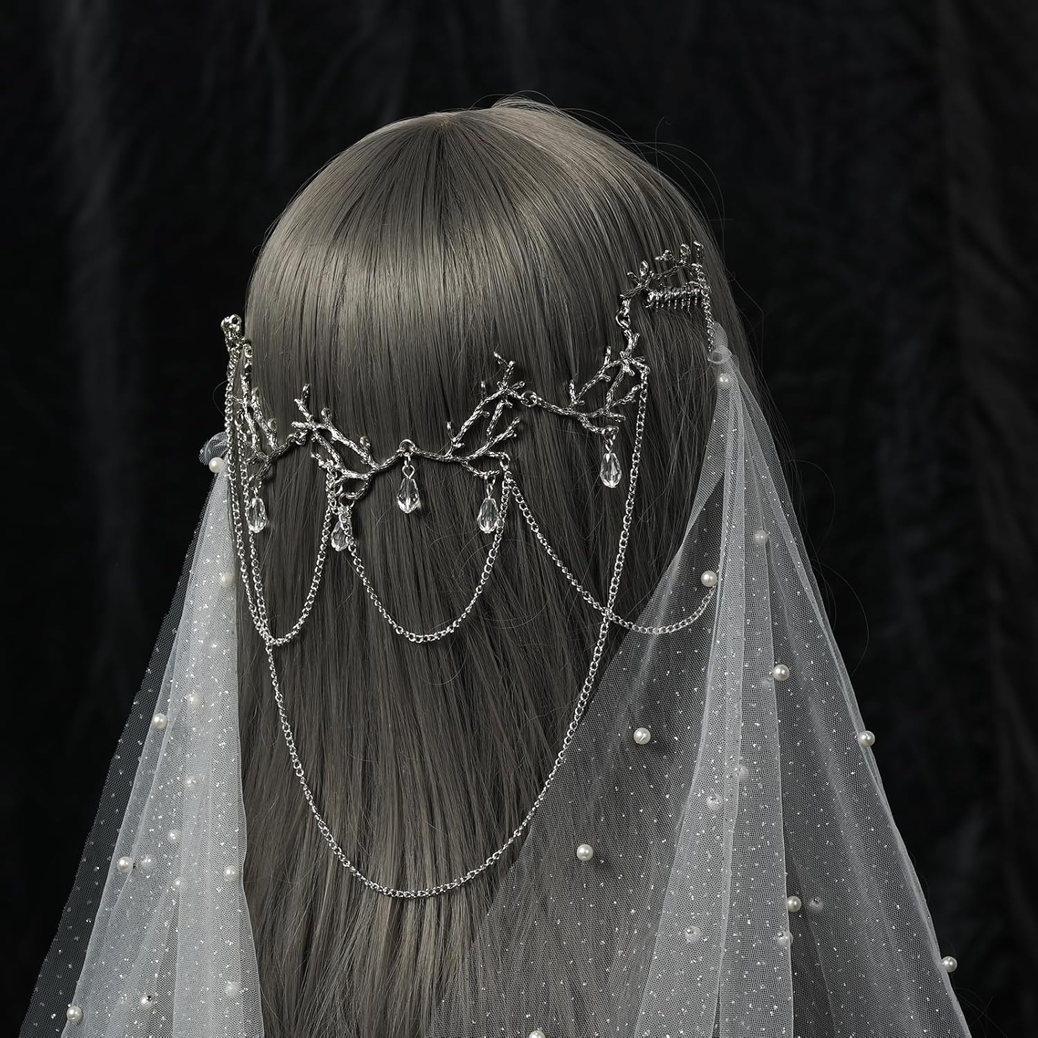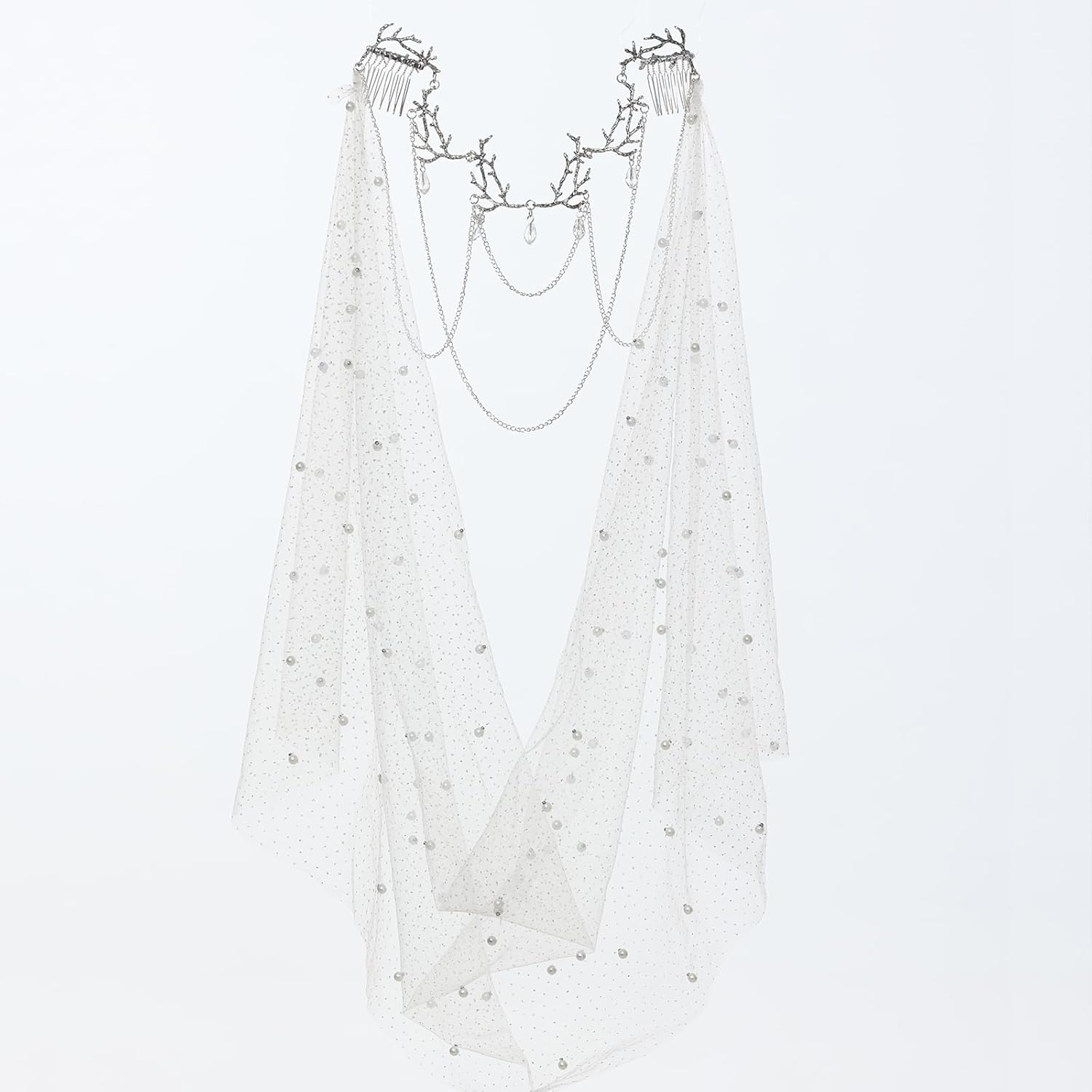 Shining Lace Wedding Veil Bride Headpiece Elven elf Wedding dress Accessory Ethereal Goddess Headwear