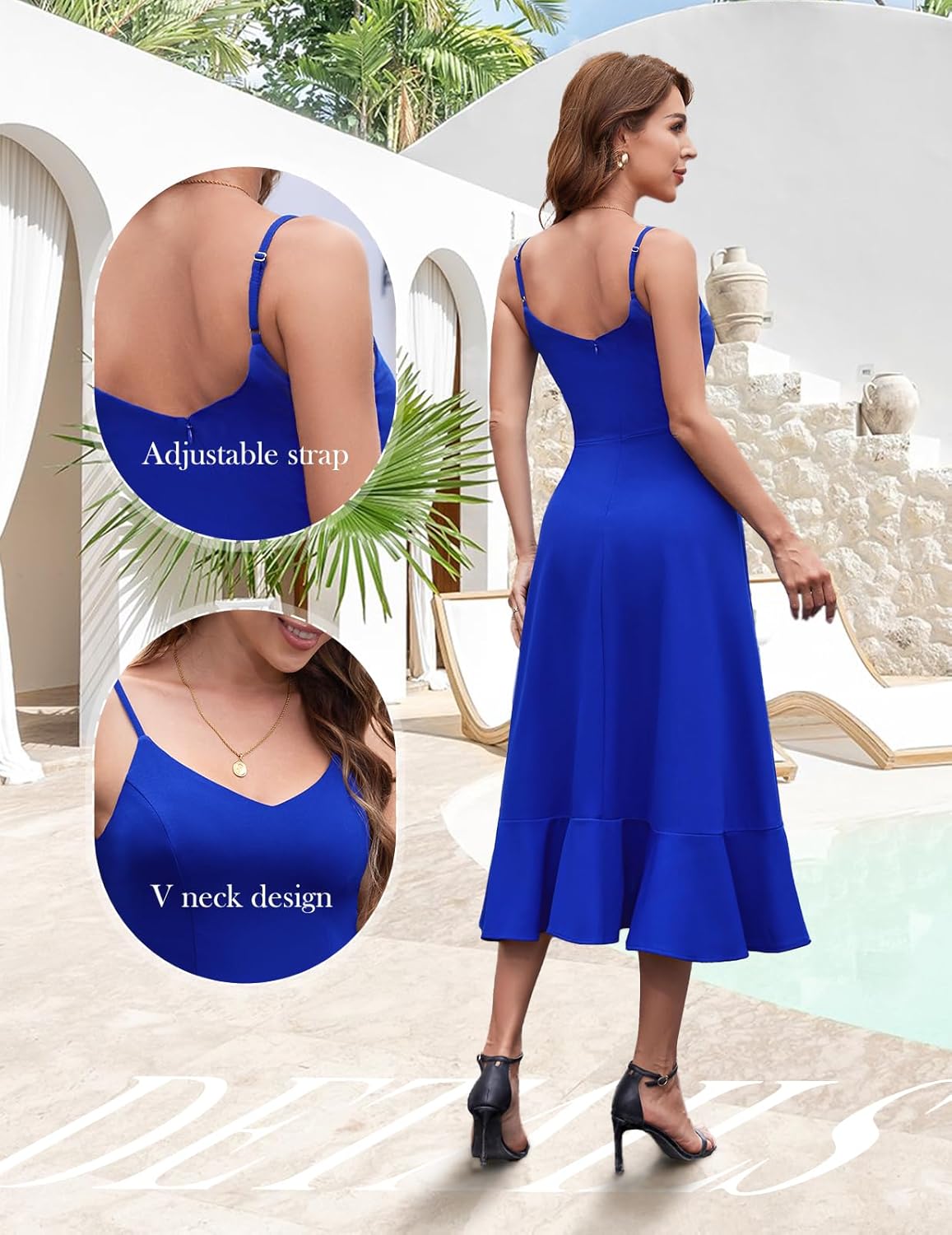 The video showcases the product in use.The video guides you through product setup.The video compares multiple products.The video shows the product being unpacked. Ruffle High Low Spaghetti Strap Dresses Merchant Video