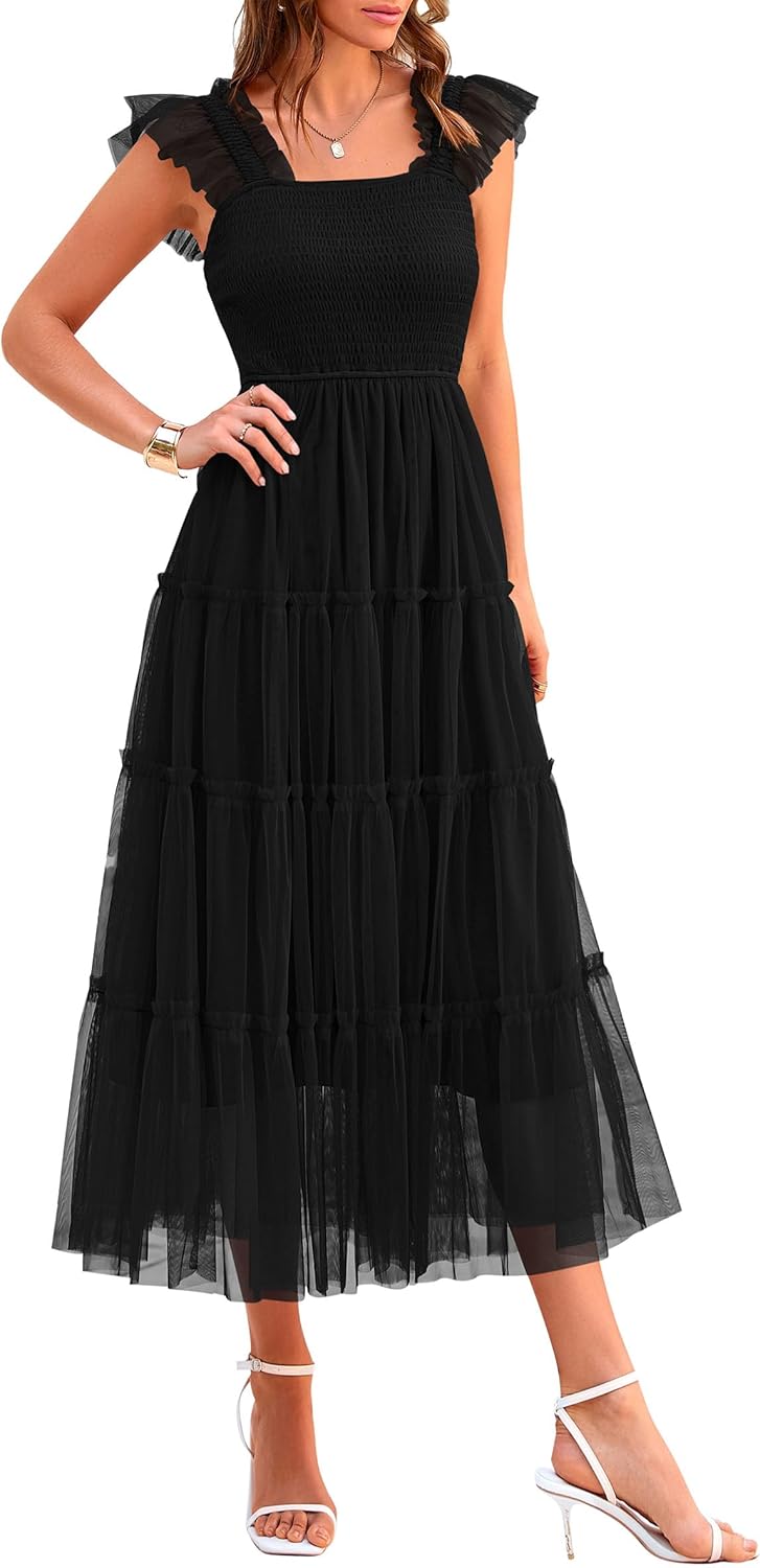 PRETTYGARDEN Women’s Tulle Midi Dress Summer Sleeveless Swing Tea Party Dresses