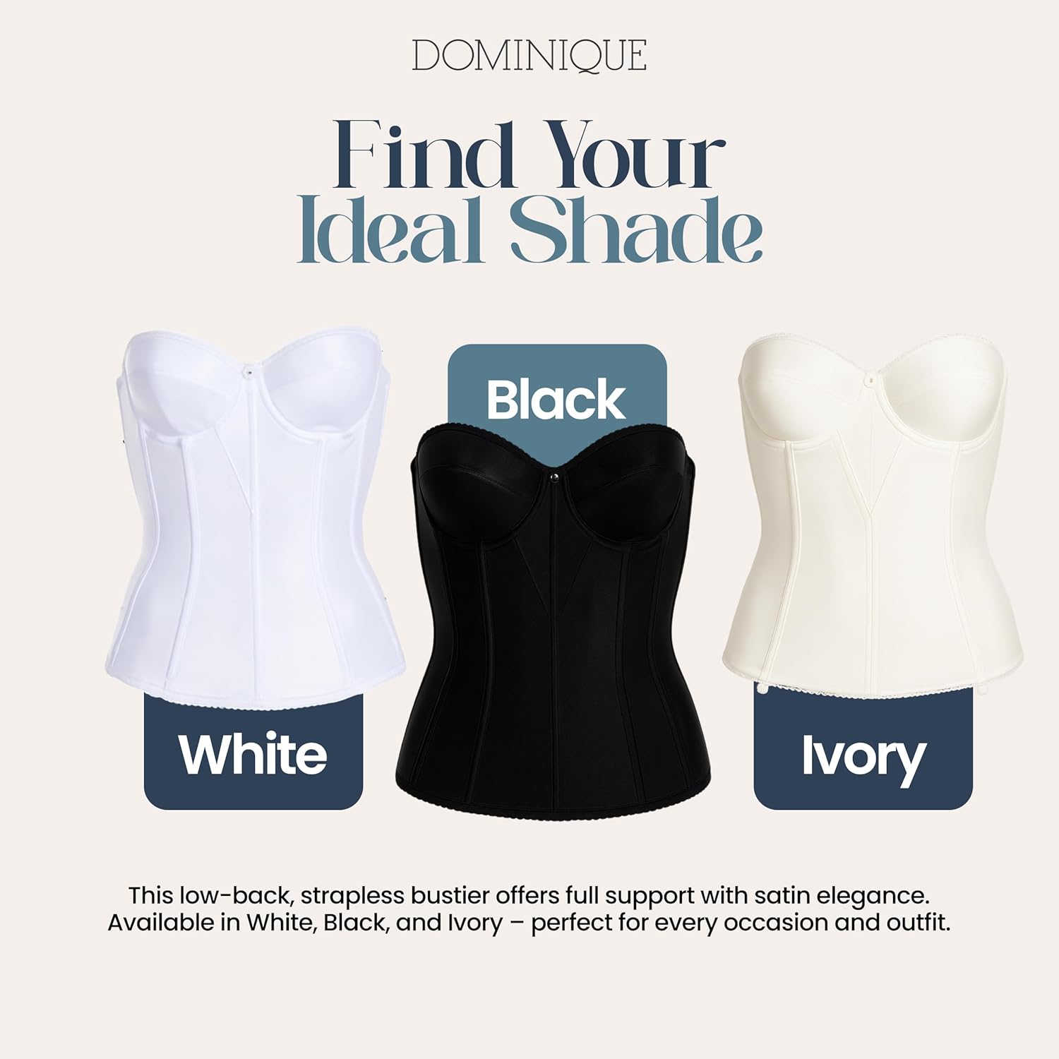Dominique Women’s Backless Strapless Juliette Satin Longline Bustier Bridal Bra #8950 – Full Support- Lingerie for women