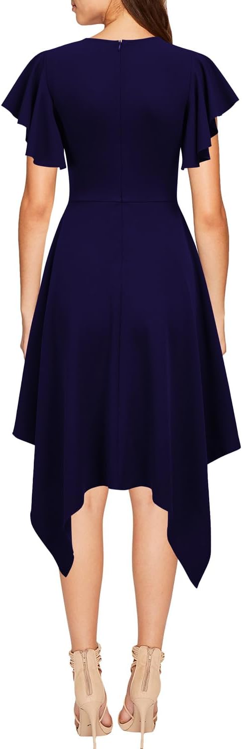 Women’s Deep V Neck Formal Dress Hem Asymmetrical A Line Party Cocktail Dress