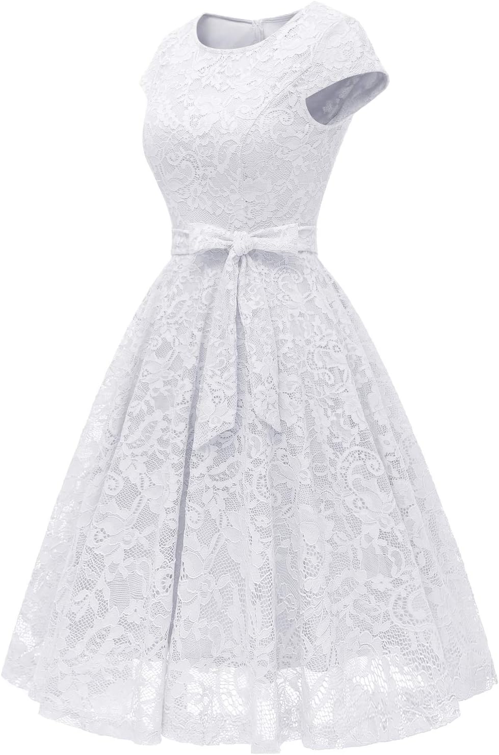 MUADRESS Lace Floral Elegant Crew Neck Wedding Guest Formal Dress