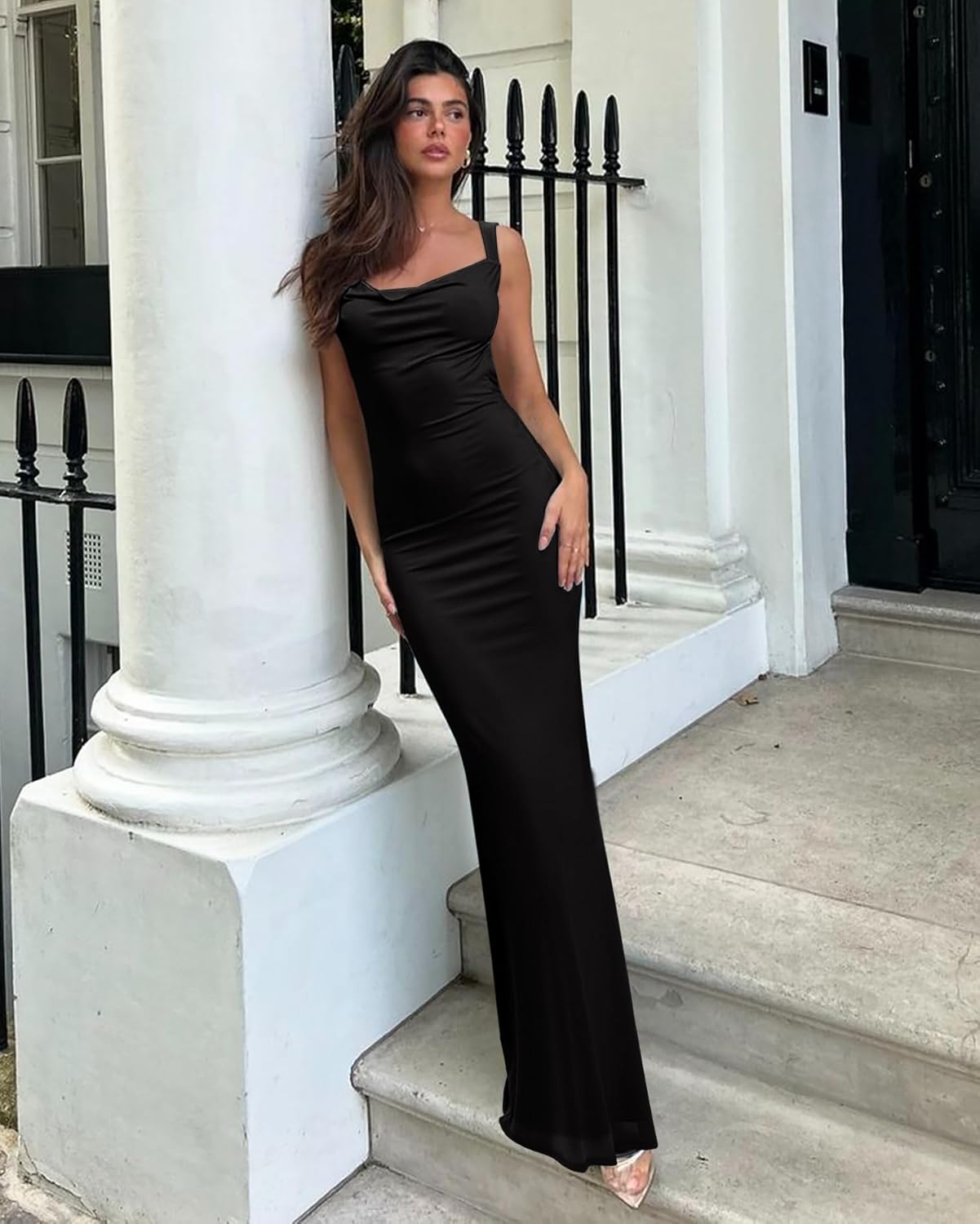 Customers find this dress elegant and flattering, with one noting how it hugs the body in all the right places. The dress offers great versatility, being suitable for both formal events and casual wear, and customers appreciate its stretchy material and comfortable fit, with one mentioning it provides plenty of room for a bump. They like its quality, particularly noting it’s perfect for wedding guests, and one customer mentions it looks more expensive than it is.