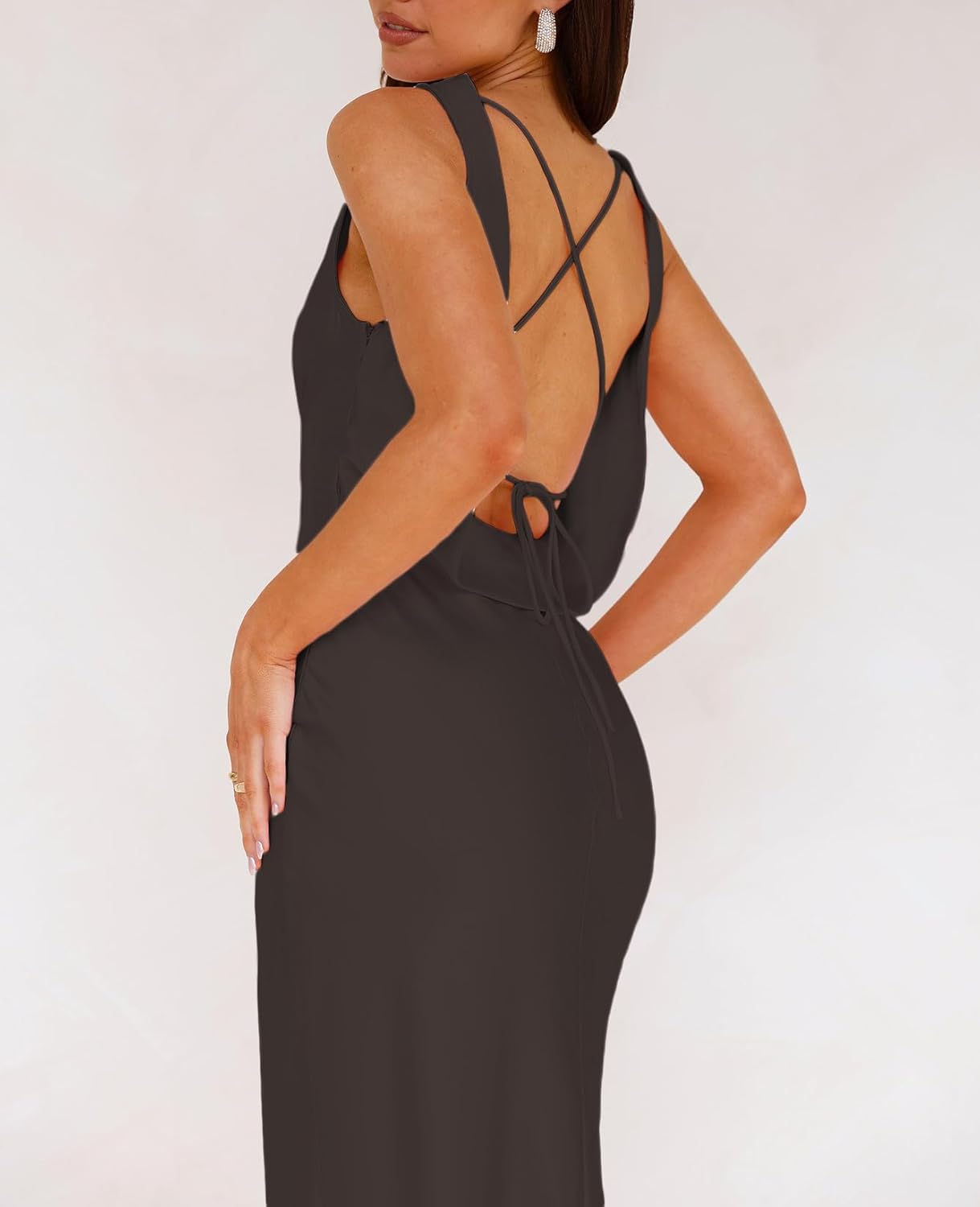 Cruise through your prom in our gorgeous silky backless cocktail party maxi dress,Style with heels for all the attention!