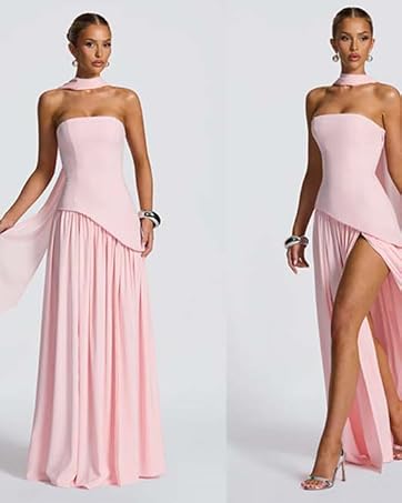 Strapless Bridesmaid Dress with Scarf Chiffon Long Prom Dresses Evening Dress
