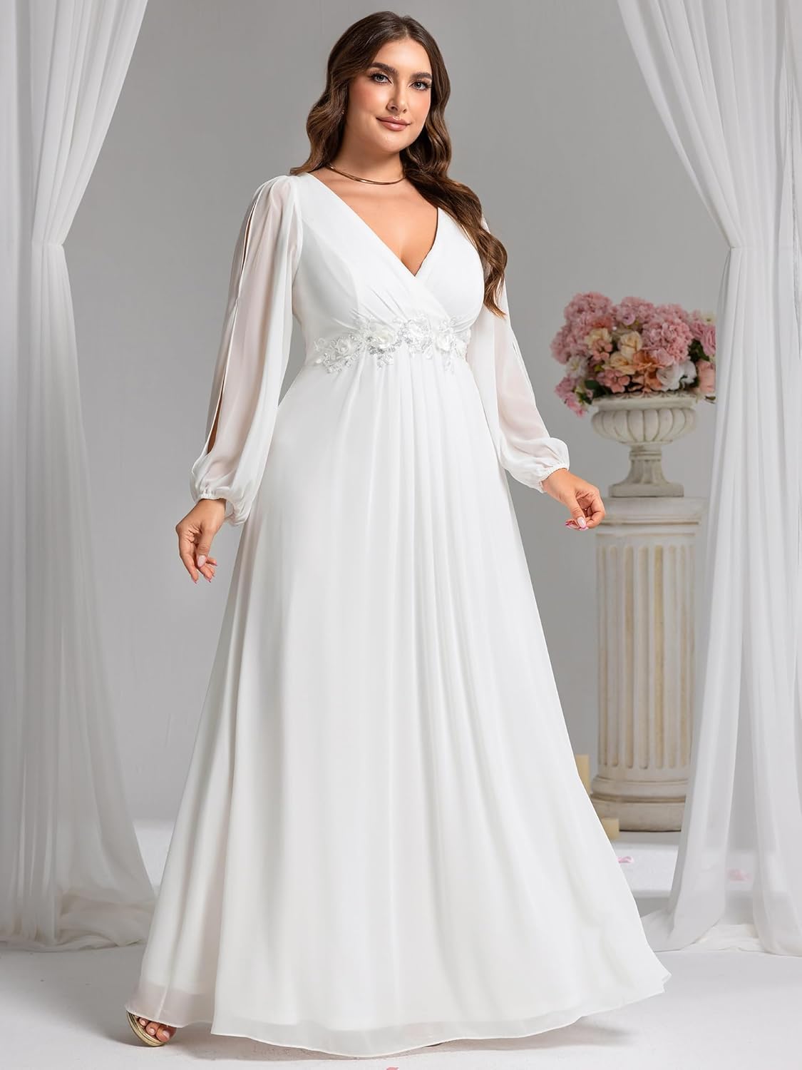 It is time to look like a princess by wearing this gorgeous plus size chiffon long lantern sleeves formal evening dress for curve.