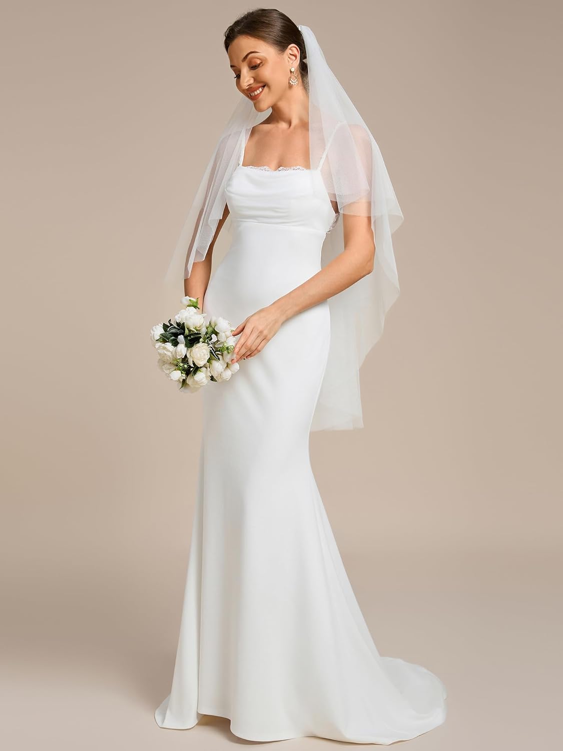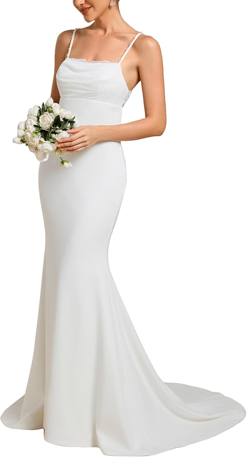 Ever-Pretty Women’s Spaghetti Strap Lace Trim Mermaid Sweep Train Wedding Dress 00154