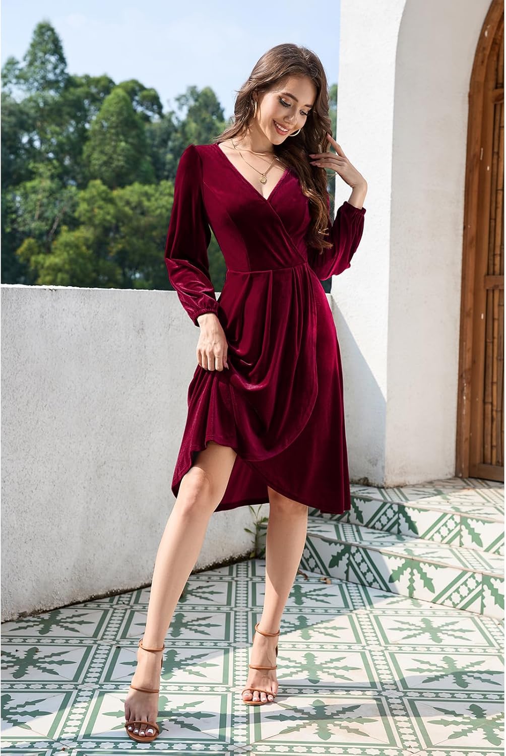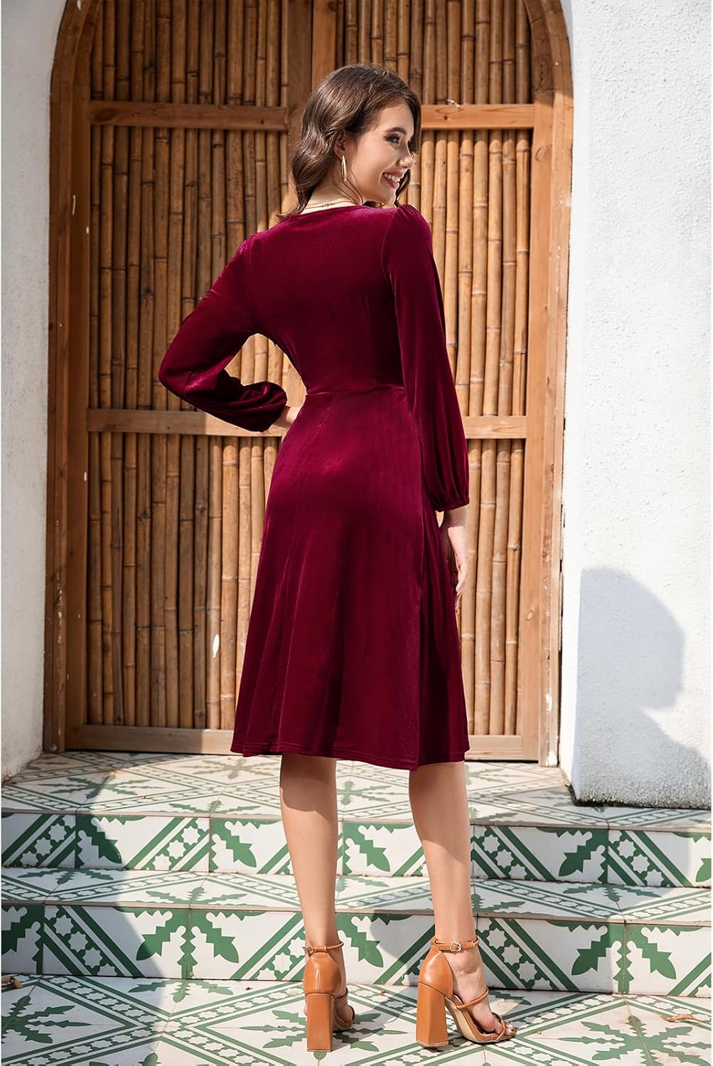 Women’s V Neck Flowy Velvet Formal Long Sleeve Dress Velvet dress.Velvet dress.