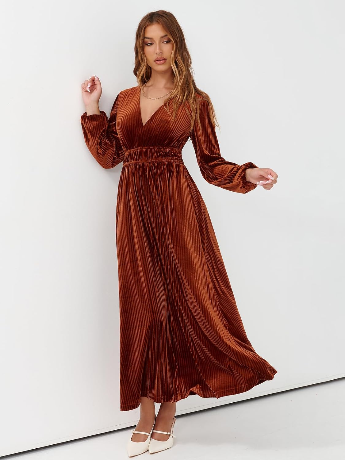 Beautiful Fall Dress Long-sleeve Velvet Maxi Dress