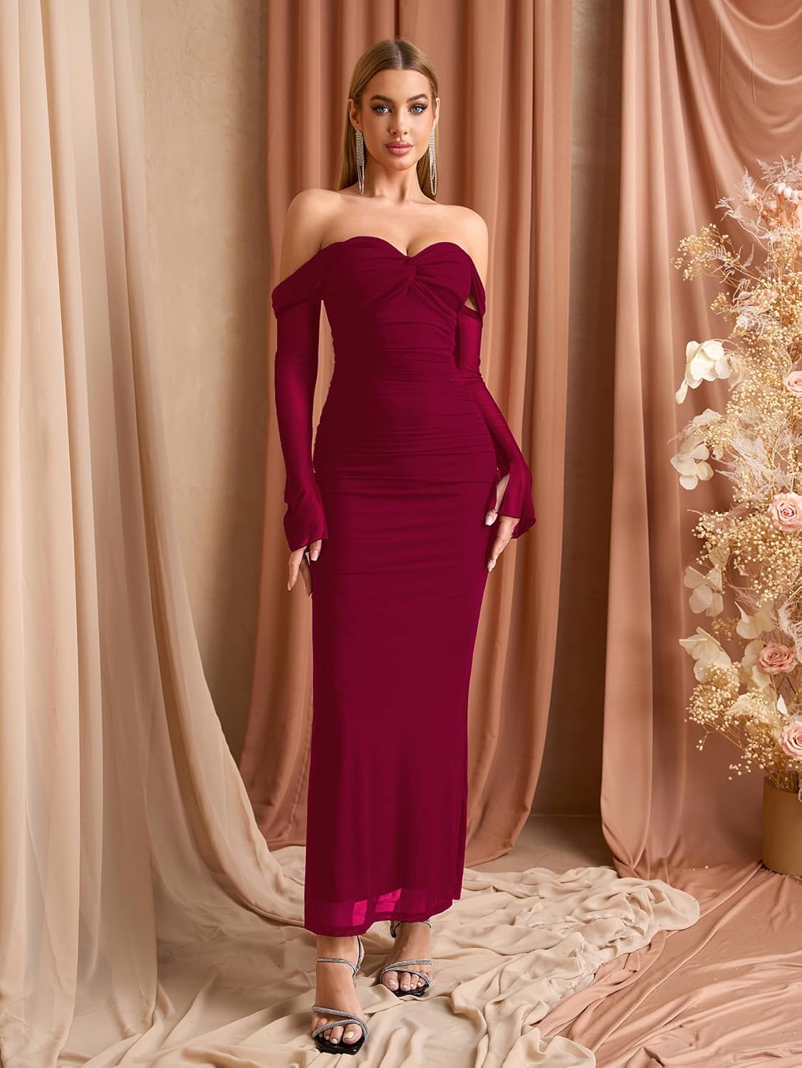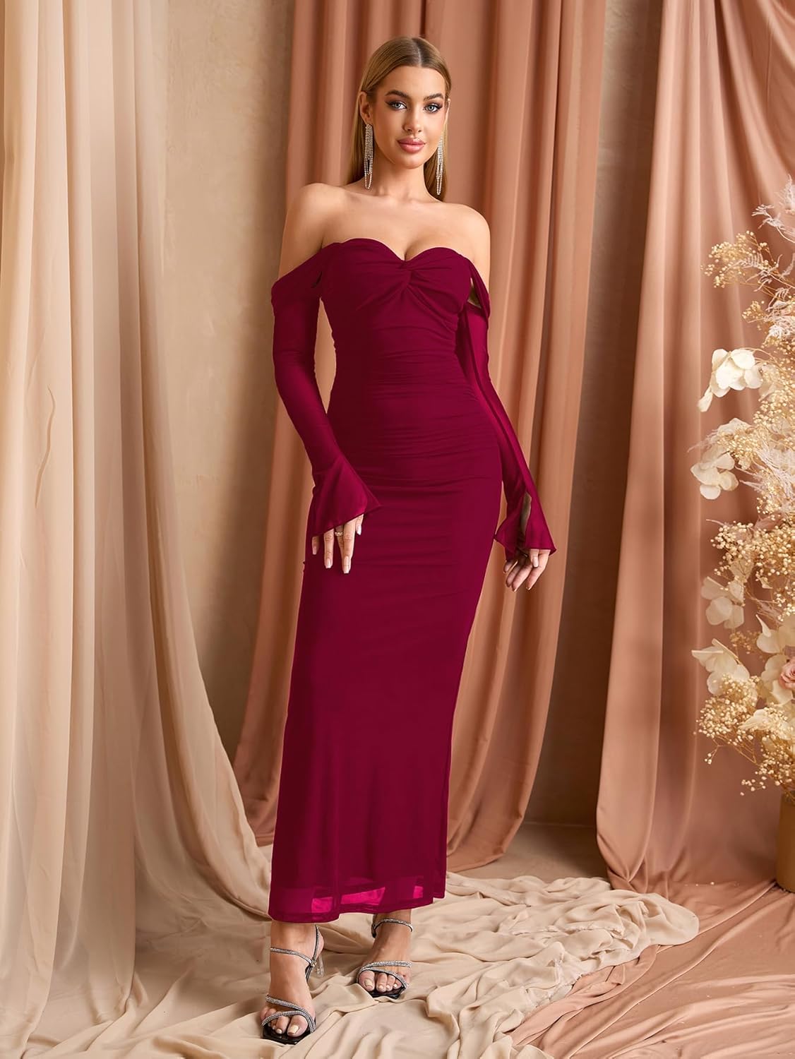Womens Off Shoulder Dress Elegant Formal Wedding Guest Dresses