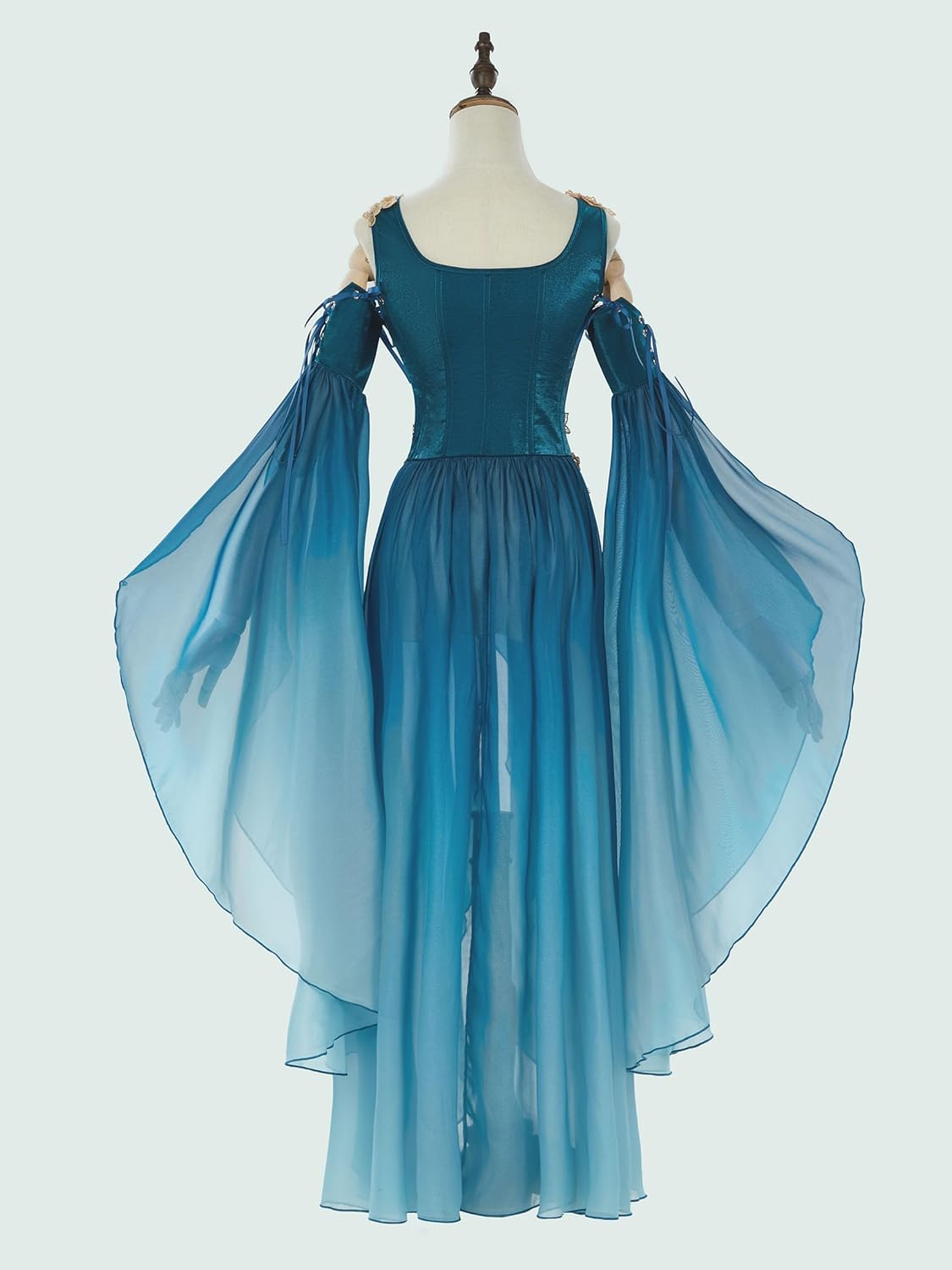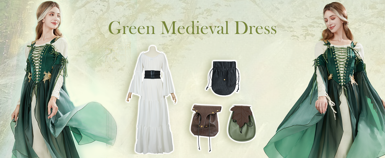 Medieval Renaissance Costume Elf Cosplay Green Dress with Sleeves
