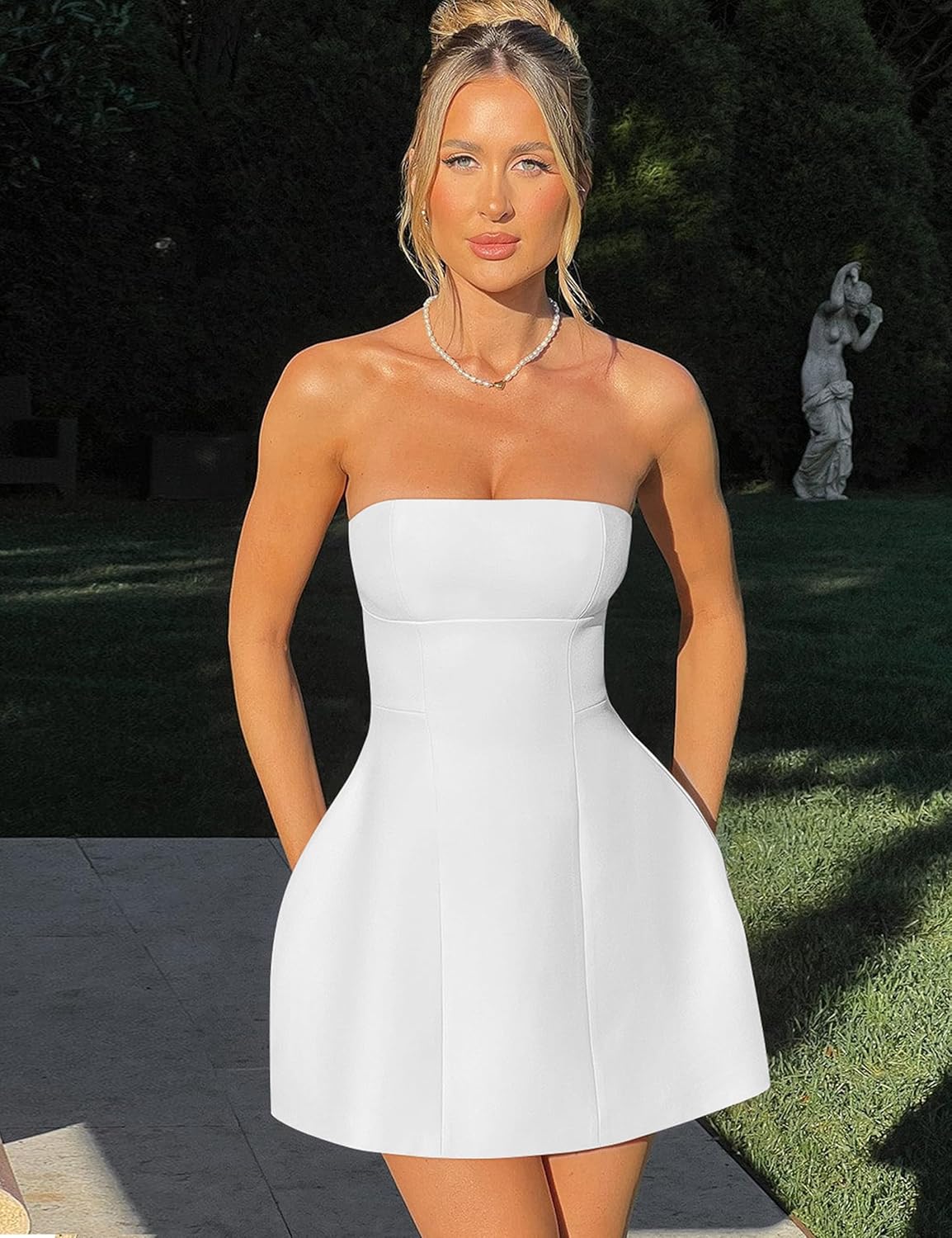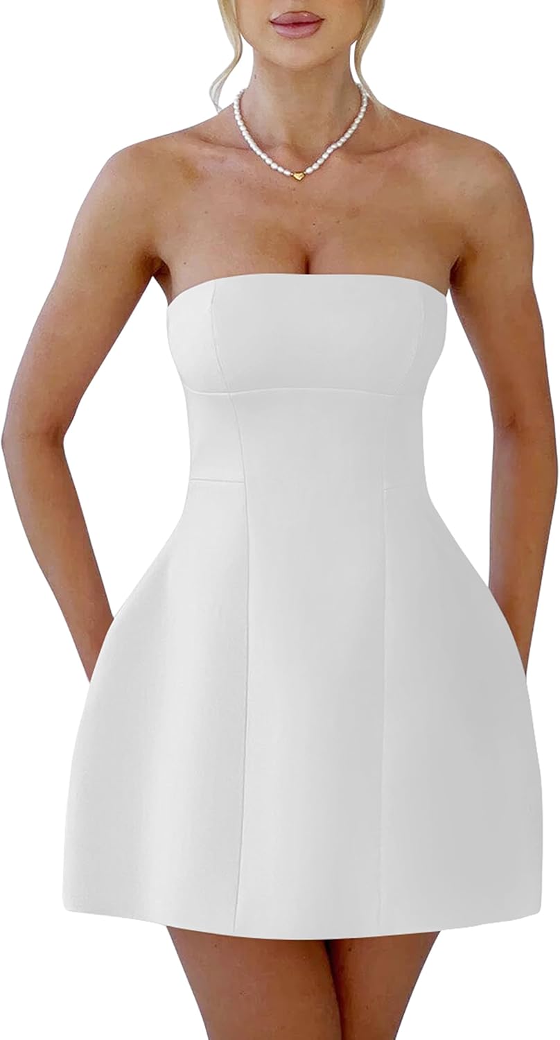 YMDUCH Womens Sexy Strapless Tube A-line Mini Dress Club Party Short Prom Dress