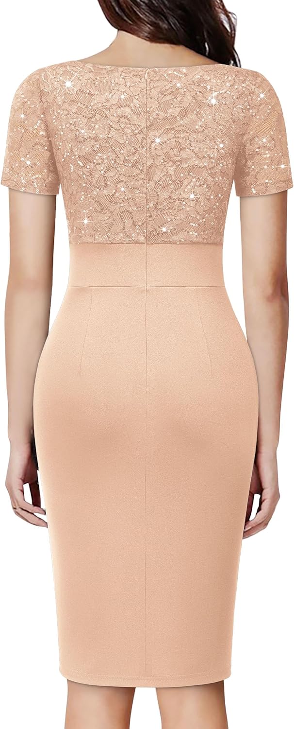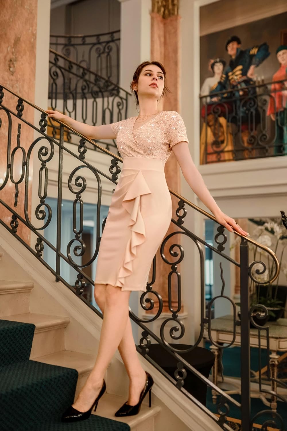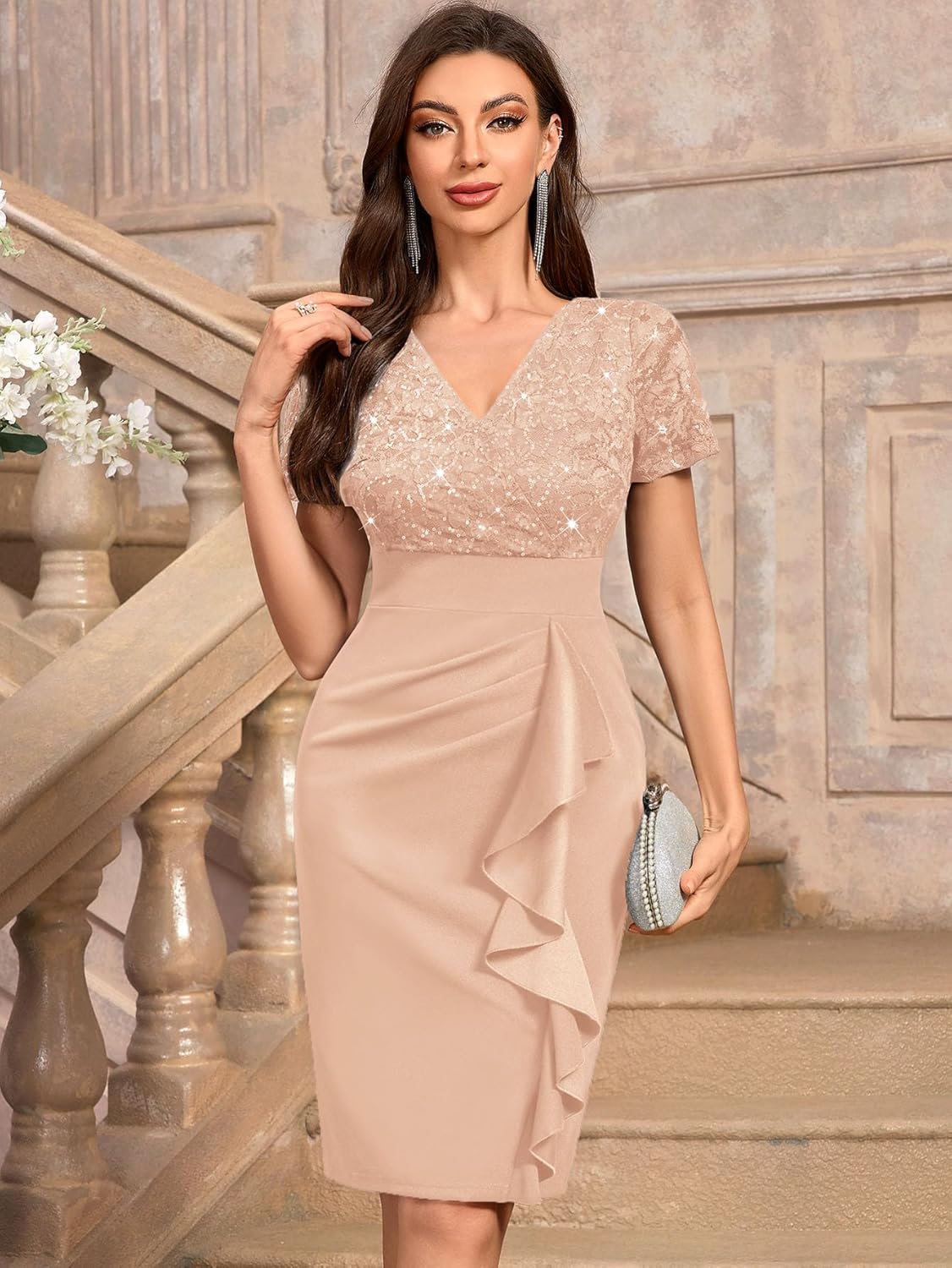 Glamour Meets Romance – A Stunning Sequin Glitter V Neck Cocktail Party Dress