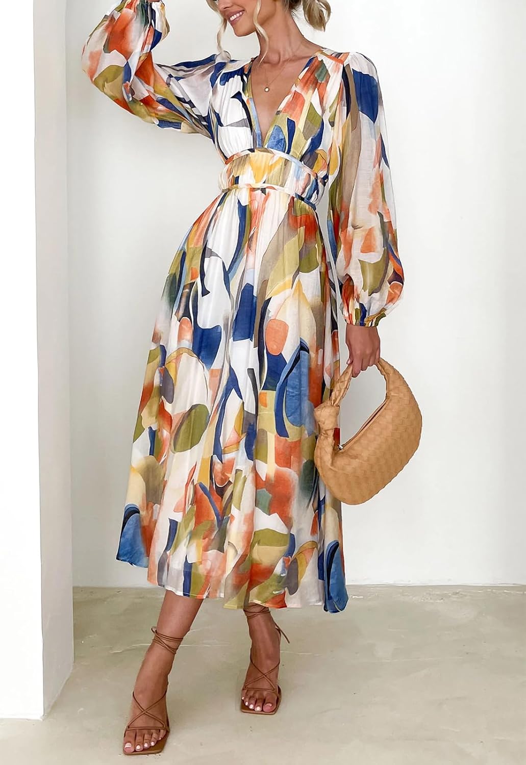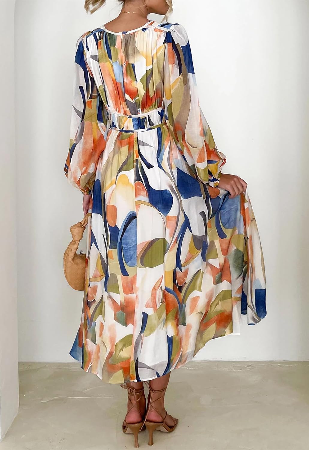 Summer Long Sleee FLoral Maxi Dress Summer Wedding Guest Dress for Women Long Sleeve Maxi Dress for Women 2025 Sissyaki Dress