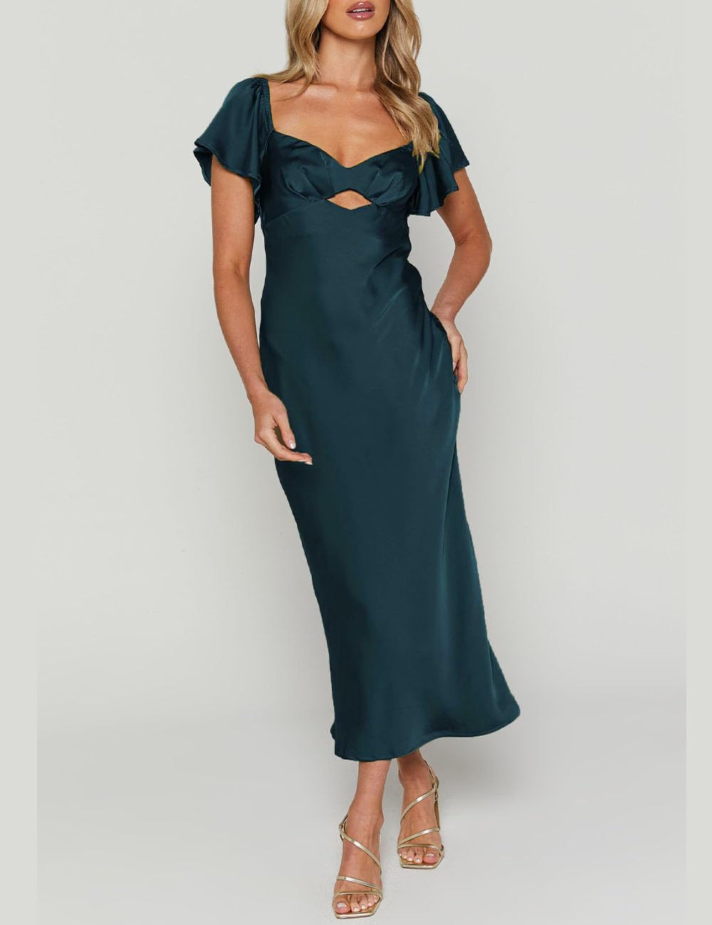 Butterfly sleeve Cutout Tie Back formal dresses for women wedding guestSatin Flutter Sleeve Cutout Tie Back Semi formal Dresses for Women