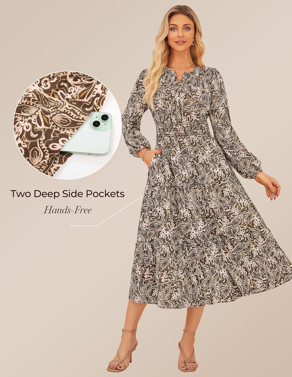 GRACE KARIN Fall Dresses for Women 2025 Floral Long Sleeve Maxi Dress