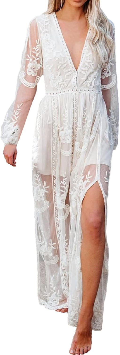 Womens Deep V Neck Short Sleeve Floral Lace Dress Long Bridesmaid Maxi Dresses
