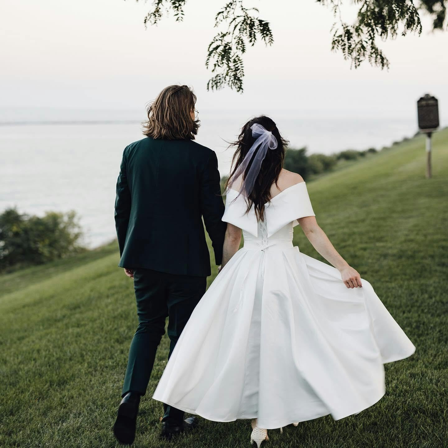Beautiful Midi Length Wedding Dress for Bride Off Shoulder Bridal Gowns