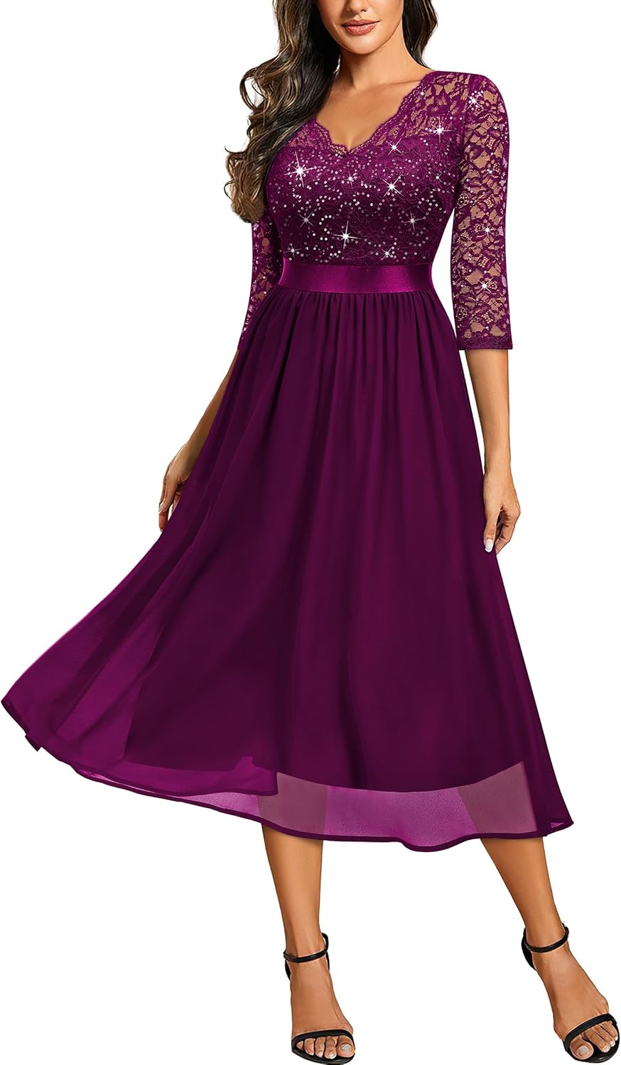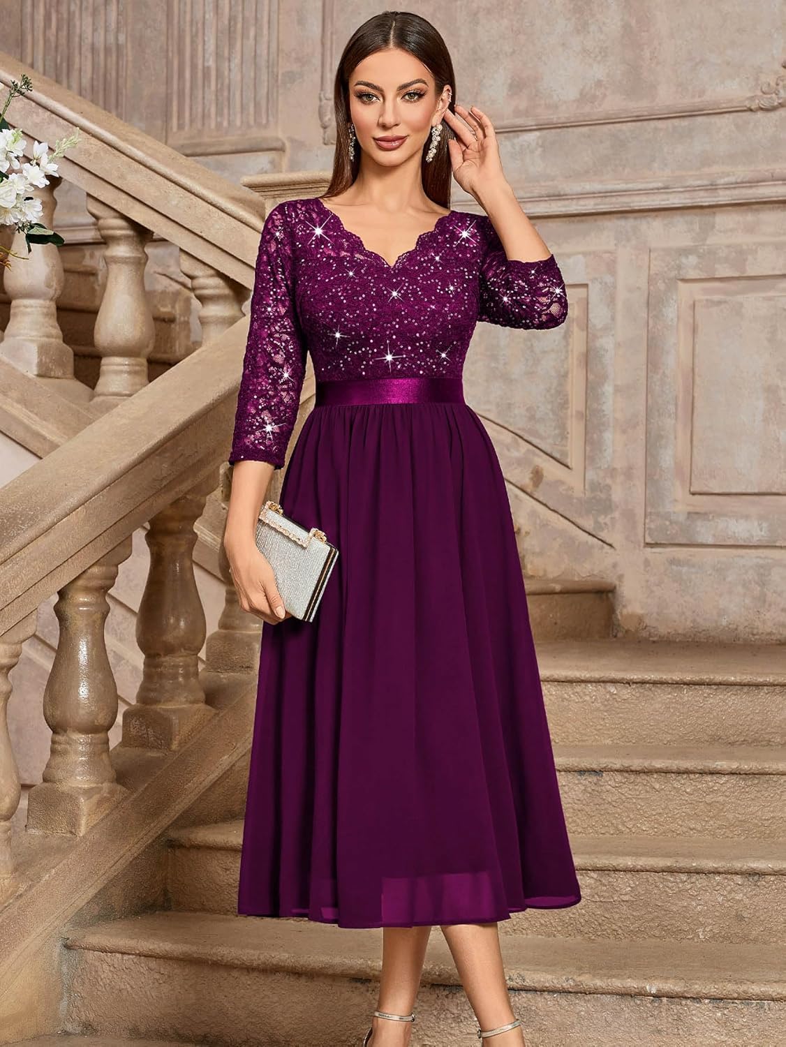 Customers find the dress has a more expensive look and appreciate its good quality and true-to-size fit. They consider it good value for money. The color receives mixed feedback, with some customers saying it’s perfect while one notes the sequins are black instead of silver.