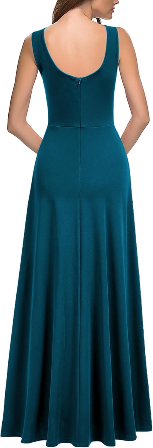 MUSHARE Women’s Square Neck Sexy Split Cocktail Party Maxi Long Formal Dress