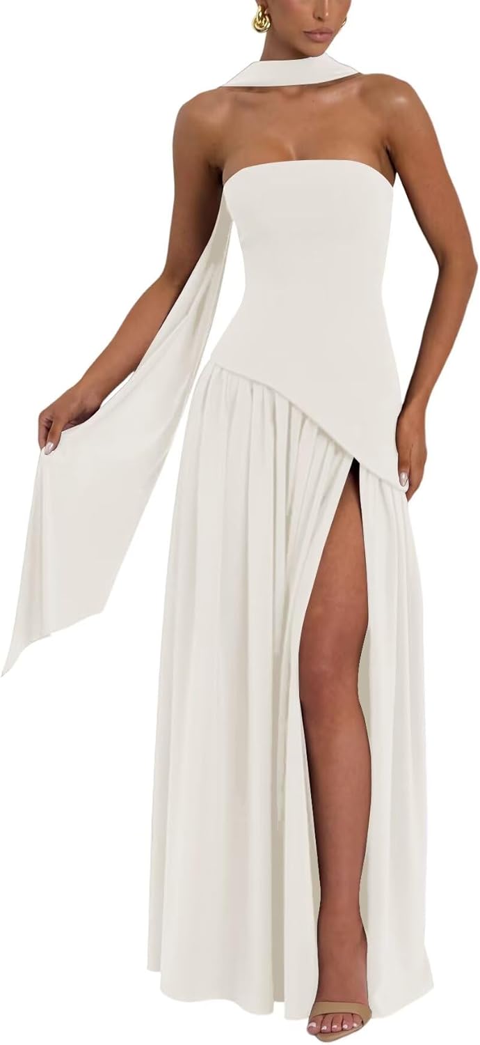Features:Strapless Satin Bridesmaid Dresses with Scarf ,Flowly Pleated Chiffon Formal Dresses for Women,Floor Length Wedding Guest Dress for Wedding party .