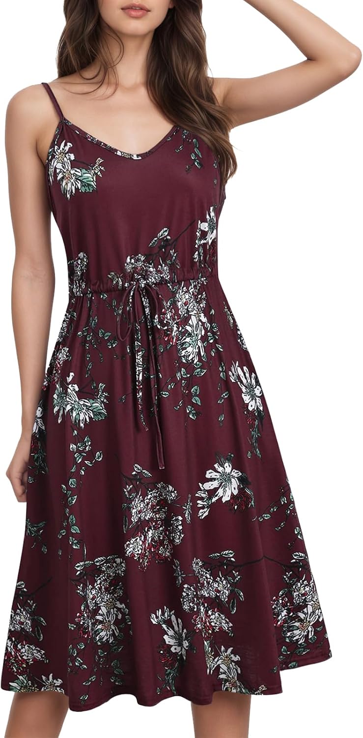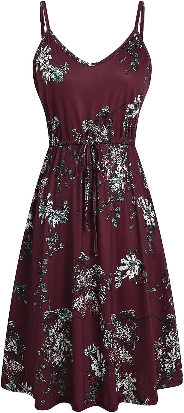 Petite Sundresses for Women with Adjustable Waist Belt A-Line Flowy Side Pockets Beach Vacation Womens Huhot Floral Dresses