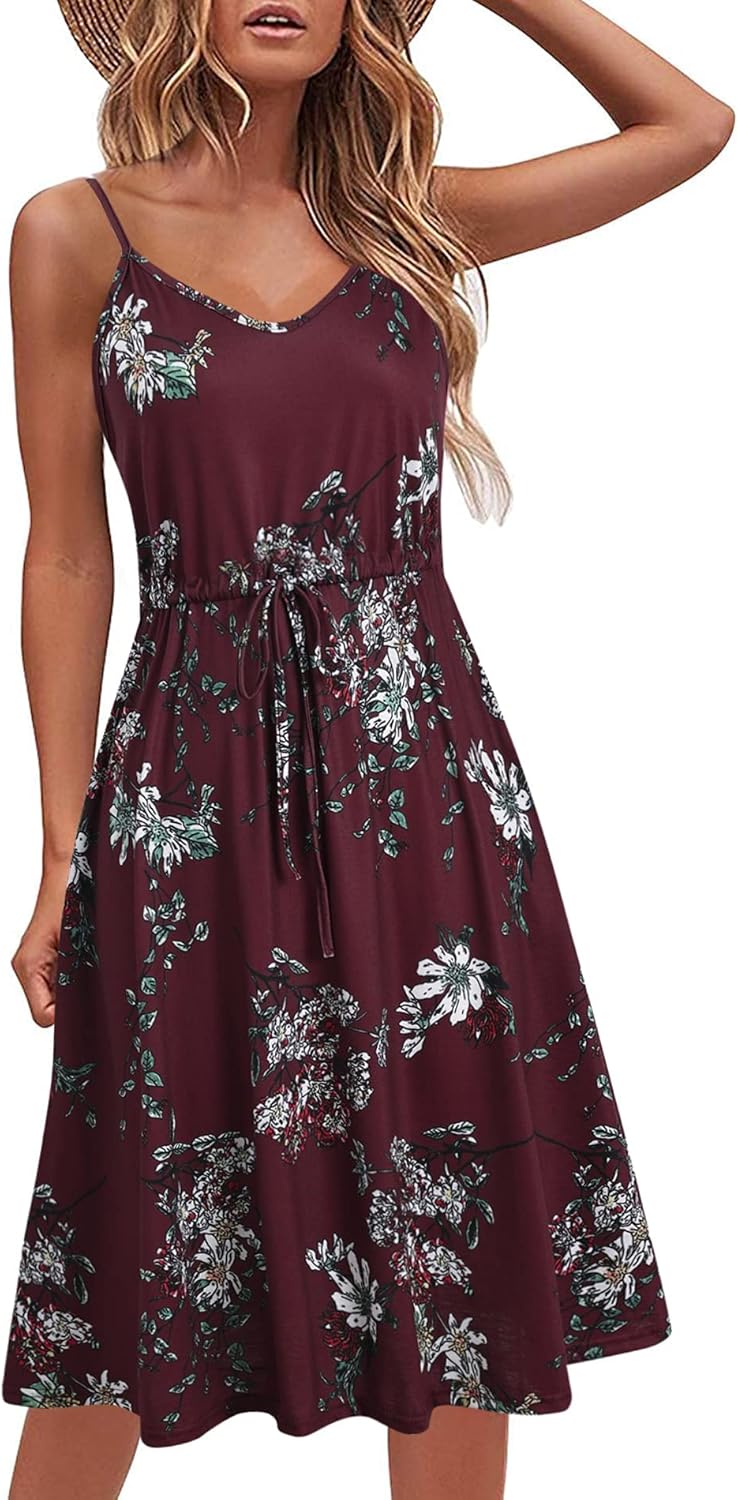 Floral Dresses for Women 2025 Perfect for Beach Date Night Vacation Casual Outings Versatile Spaghetti Strap A-Line knee Length Petite Dresses