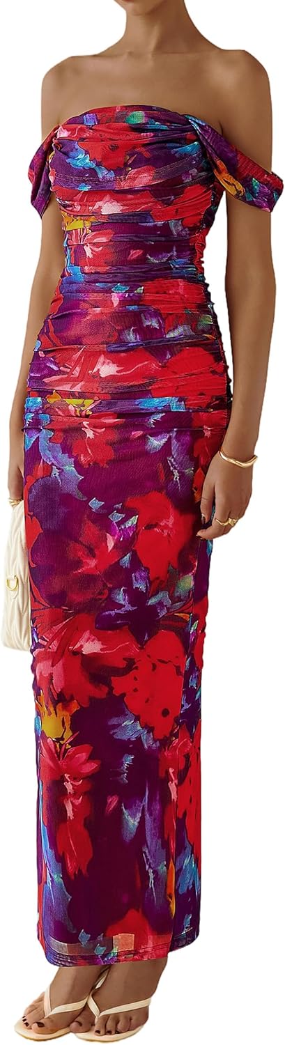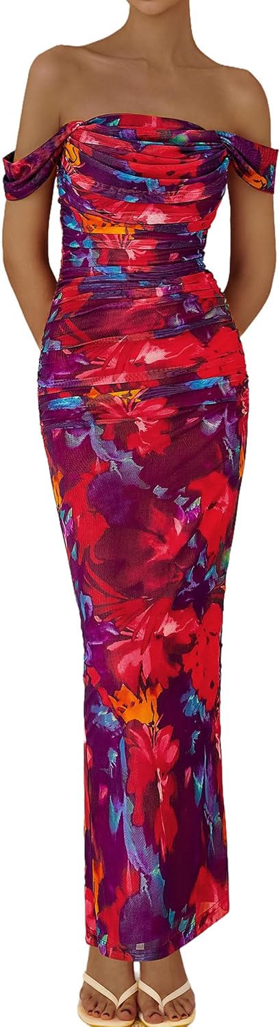 PRETTYGARDEN Cocktail Dresses for Women Off The Shoulder Ruched Bodycon Dresses
