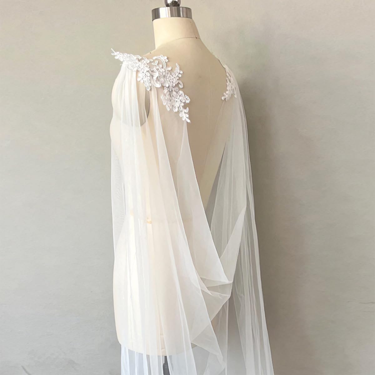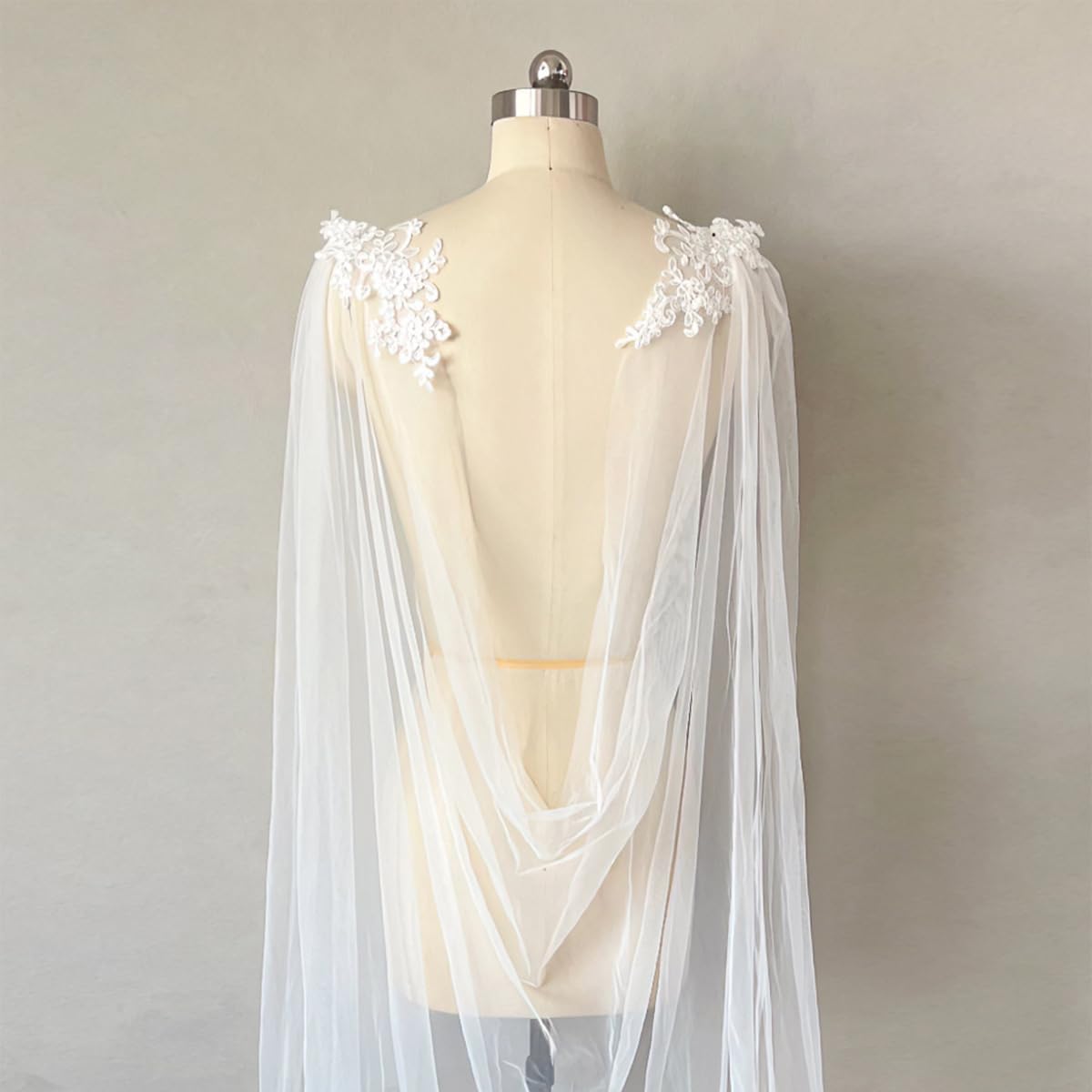 Wedding Shoulder Cape for Bride,Tulle Lace Cape Veil Cloak for Wedding Halloween Cosplay Themed Party