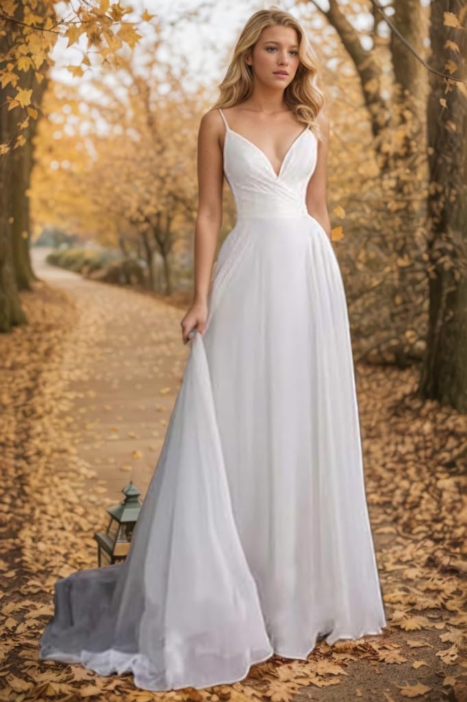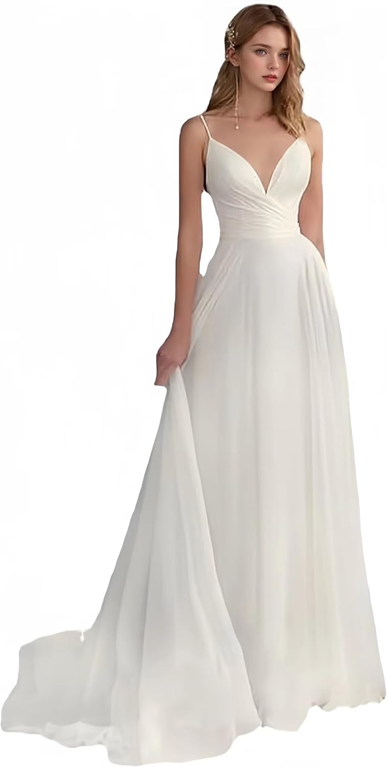 2024 V Neck Long Chiffon Women’s Wedding Dresses for Bride Chiffon wedding dressChiffon wedding dress