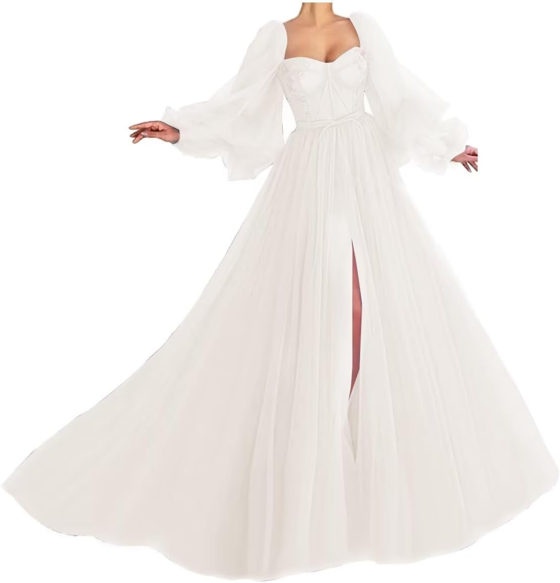 Welcome to WWOM Puffy Sleeve Prom Dresses 2025 Tulle Ball Gowns for Women Formal A Line Wedding Party Gowns