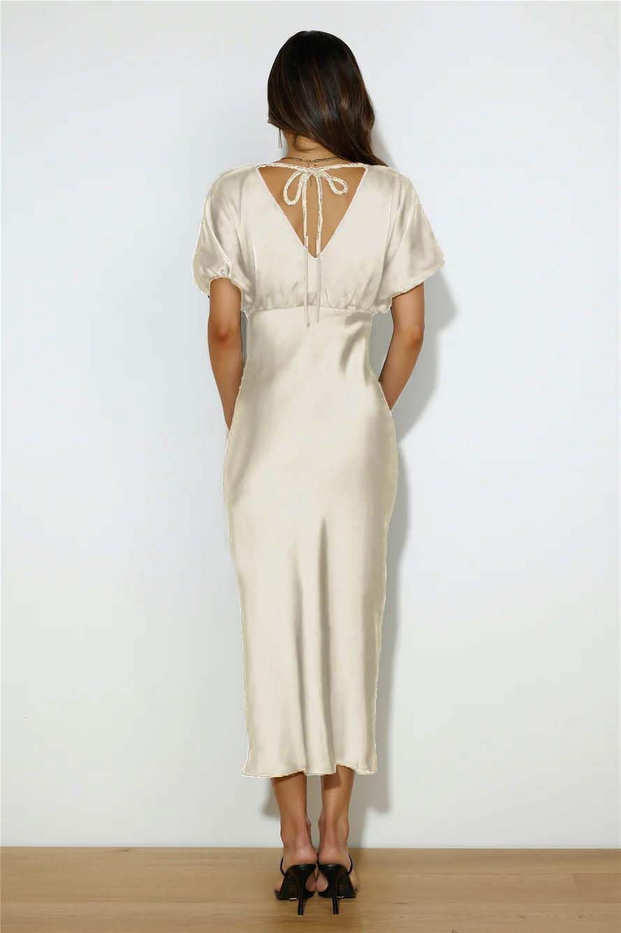 Spring Silk Backless Wedding Guest Maxi Dress Cocktail Dress