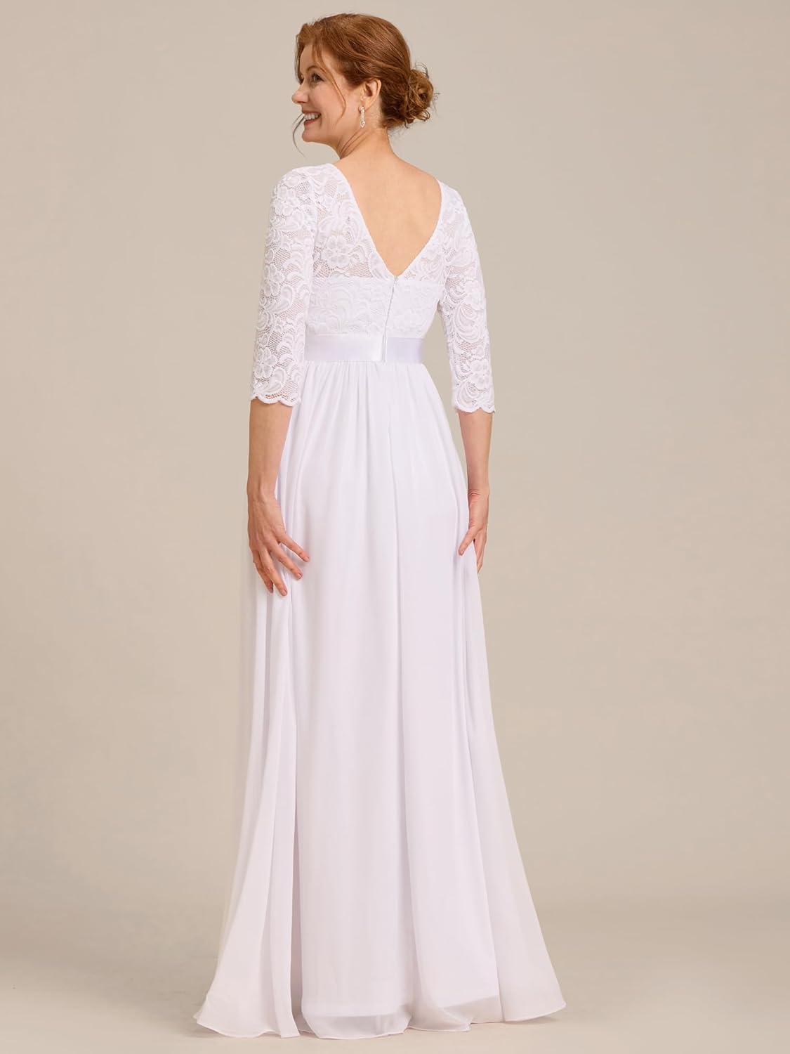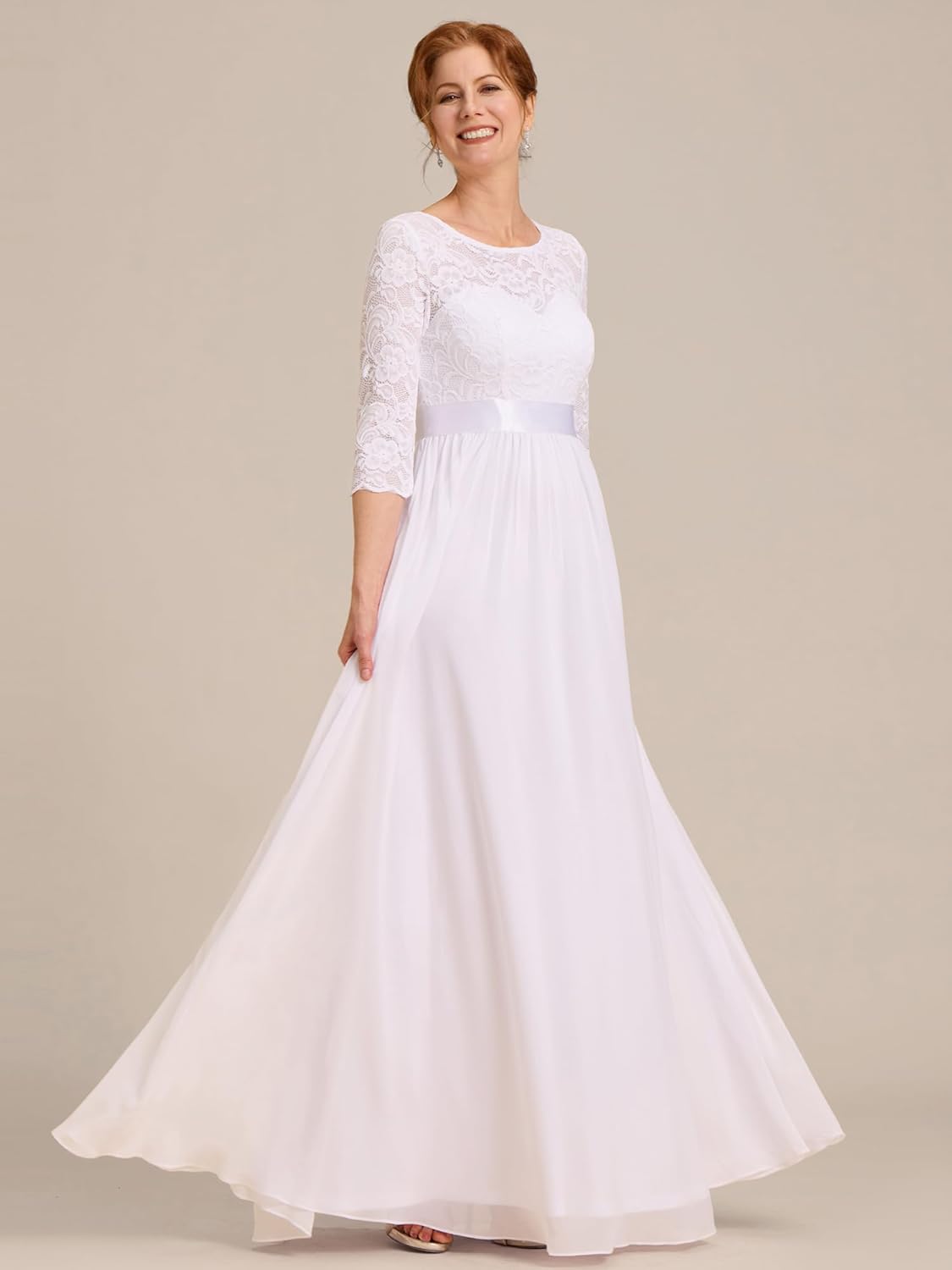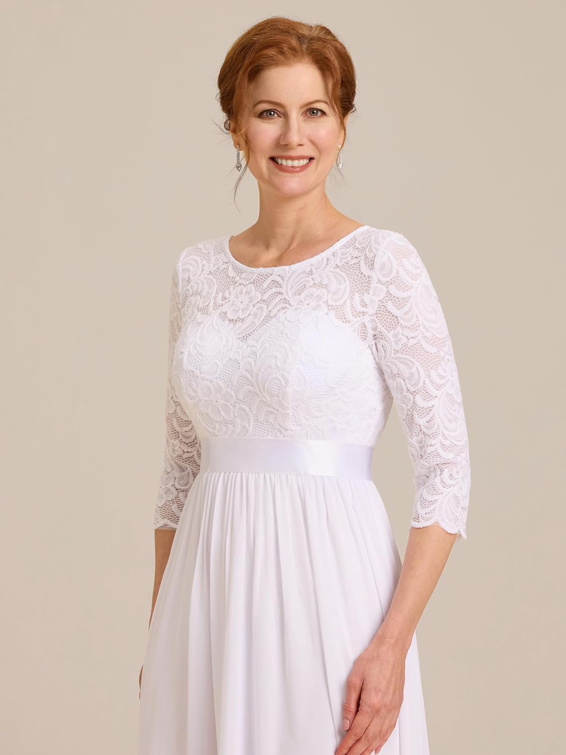 Customers find this bridesmaid dress gorgeous and well-made, with a soft white color and flattering 3/4 sleeves. They appreciate its comfort, with one customer noting the stretchy sleeves are comfortable, and consider it good value for money. The dress receives positive feedback for its quality, with one customer mentioning it was perfect for their simple but perfect wedding, and another noting how it accentuates the collarbone and neck. Customers disagree on the sizing, with some finding it runs too big.