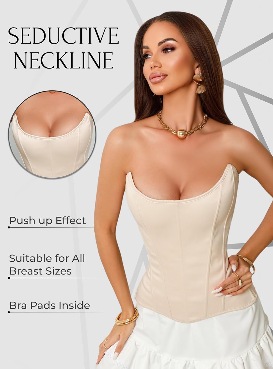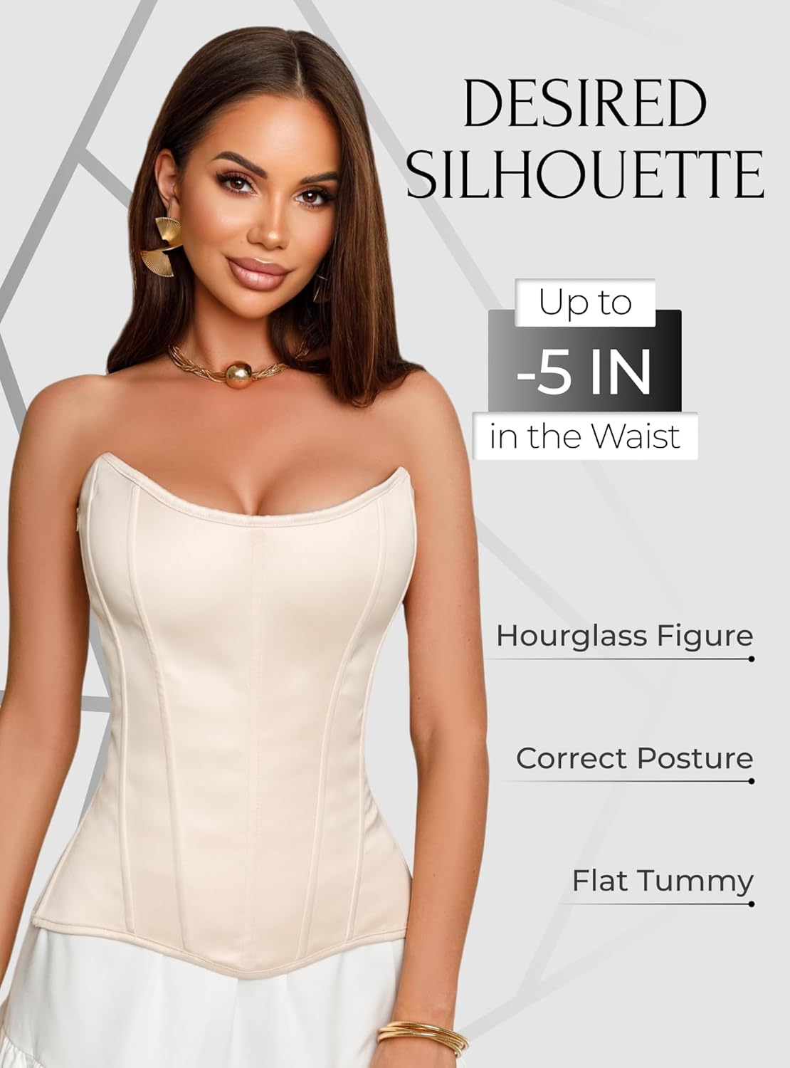 Customers find the corset provides a flattering fit that perfectly shapes the figure, with high-quality material and soft fabric that doesn’t catch on hands. They appreciate its elegance, comfort, and ease of wear, with one customer noting it’s perfect for styling with everyday outfits. The zipper receives mixed feedback – while some praise its seamless design, others find it difficult to use.