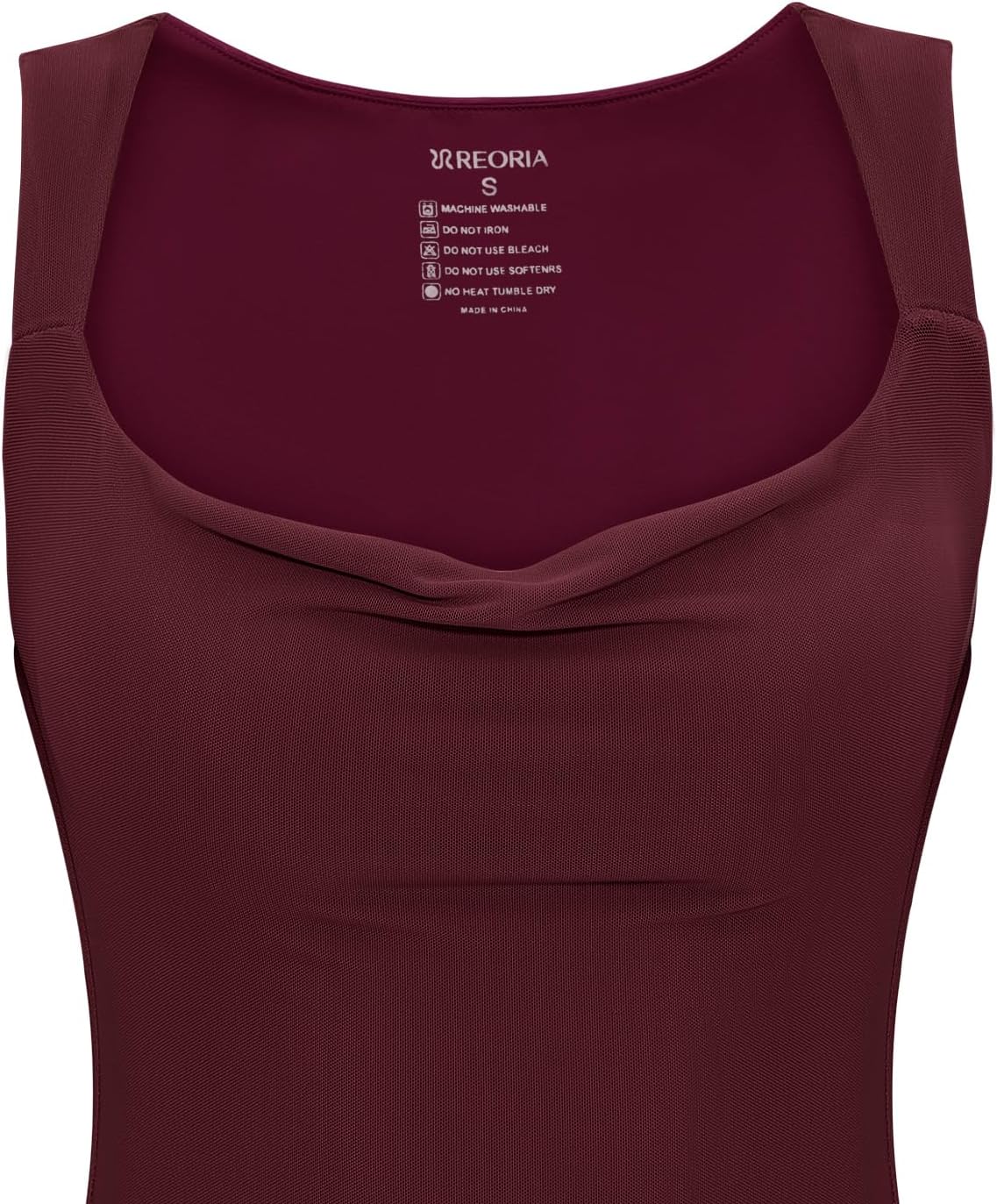 REORIA Women’s Summer Cowl Neck Mesh Sleeveless Tank Dress Sexy Double Lined Bodycon Maxi Long Dresses