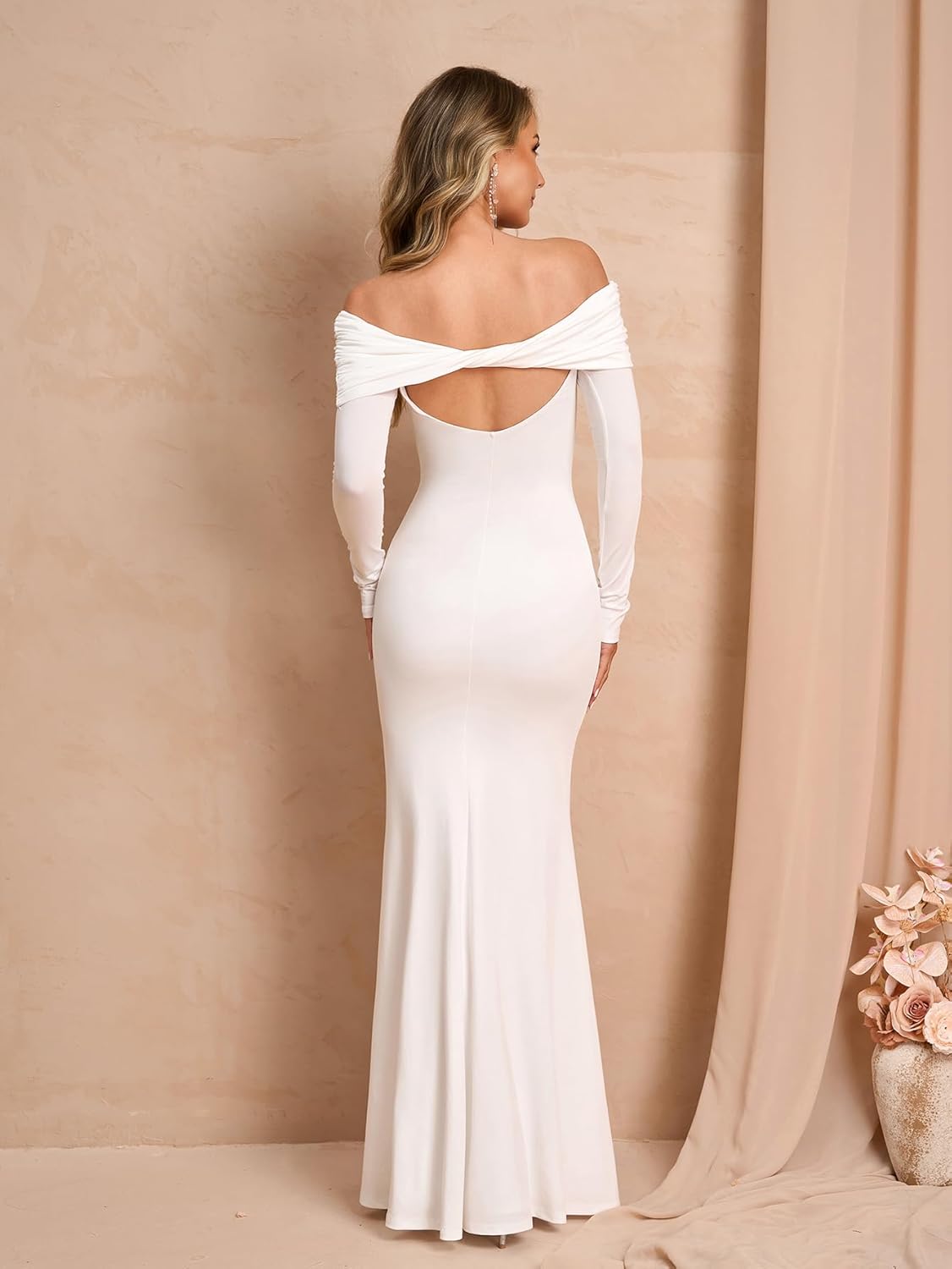 URYIAO Off The Shoulder Long Sleeve Bodycon Maxi Dresses