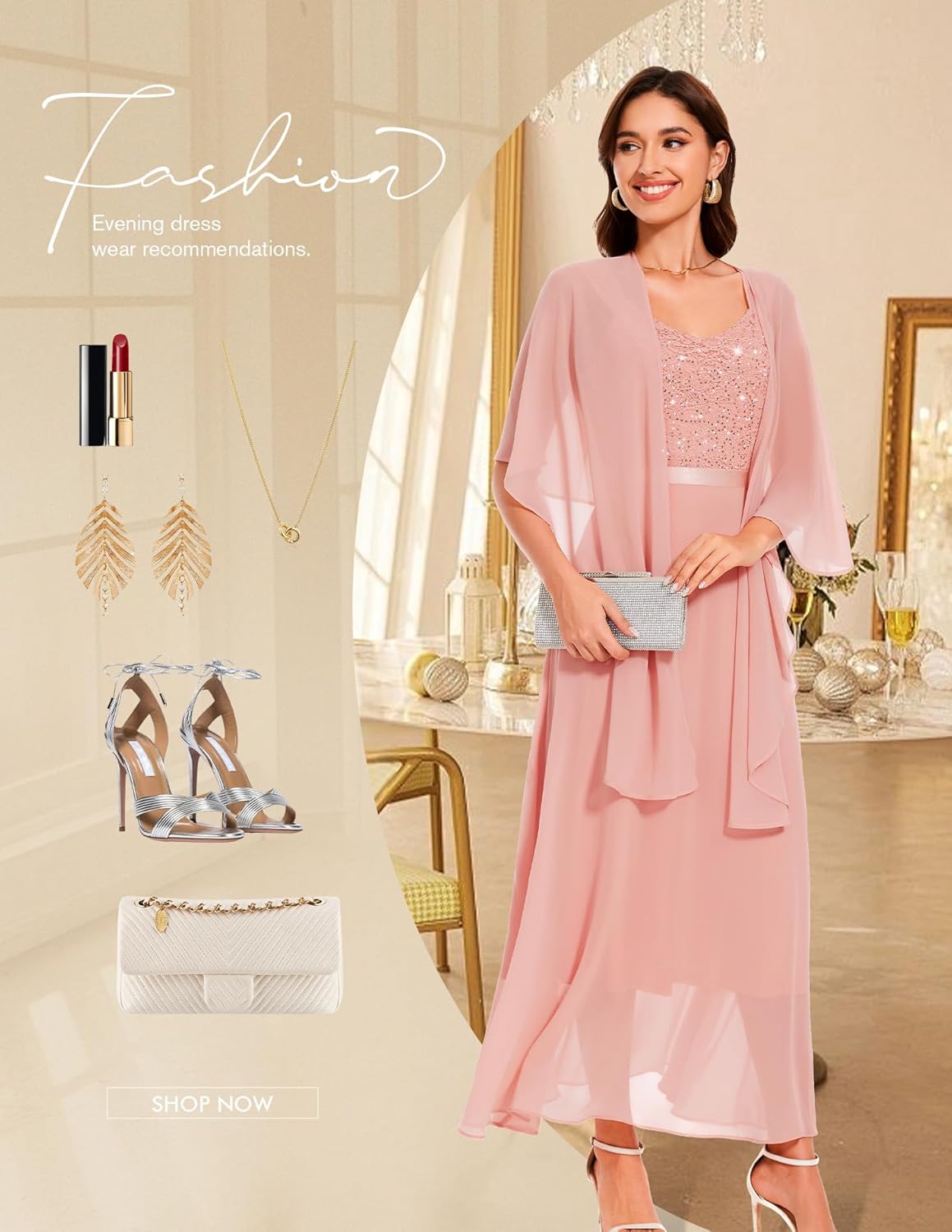 BeryLove Formal Wedding Guest Sequin Dress Mother of The Bride Two Piece Dress
