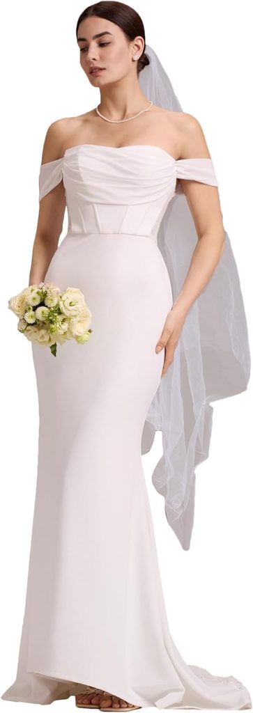 LALAGEN Women’s Floral Lace Long Sleeve Off Shoulder Wedding Mermaid Dress