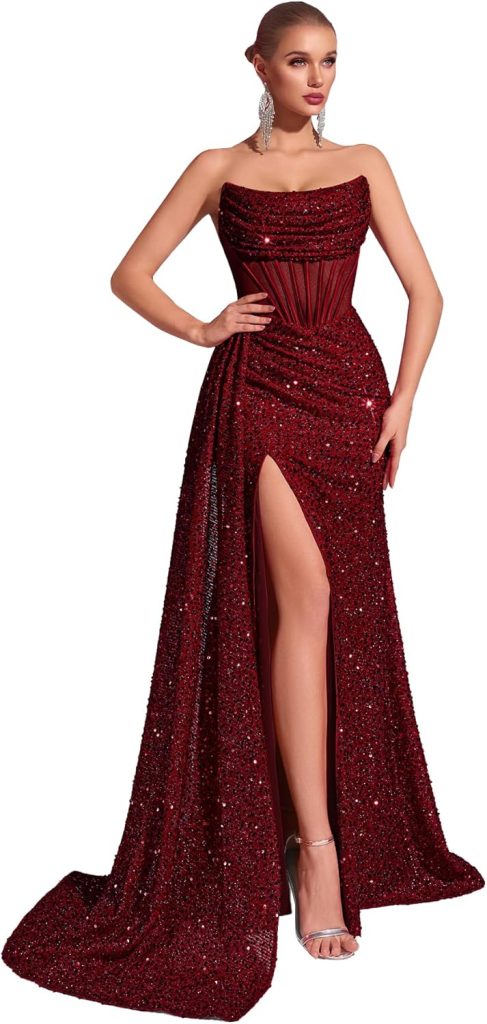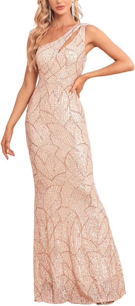 Product description YHHOWEP Sparkly Sequin One Shoulder Formal Dresses Evening Dress for Women 2025 Elegant