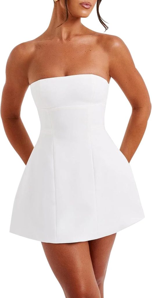 Product description Women Strapless Dress Sleeveless Mini Dress Flowy Bustier Swing Backless Dress Strapless Dress