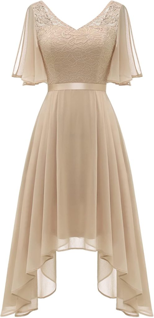 Product description BeryLove Women Elegant Midi Homecoming Dresses Flutter Sleeve Hem Cocktail Dress This is