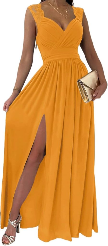 Product description Dokotooo Summer Wedding Guest Maxi Dress Dokotoo V-Neck Lace Empire Waist Formal Dress