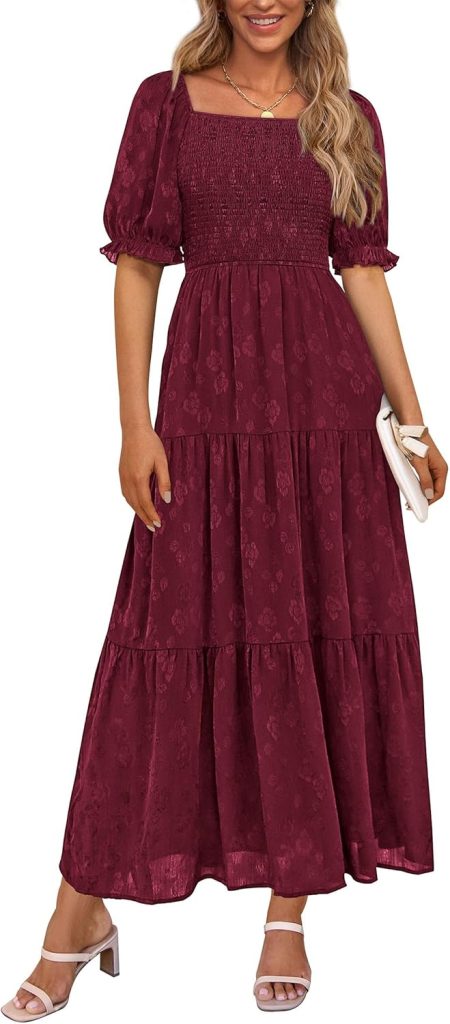 PRETTYGARDEN Women’s 2025 Summer Casual Midi Dresses Square Neck Short Sleeve Smocked A Line Floral Flowy Elegant Boho Dress