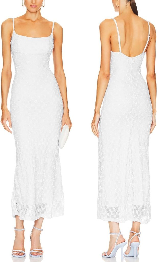 Product description Women’s Adjustable Spaghetti Strap Lace Bodycon Dress The video showcases the product in