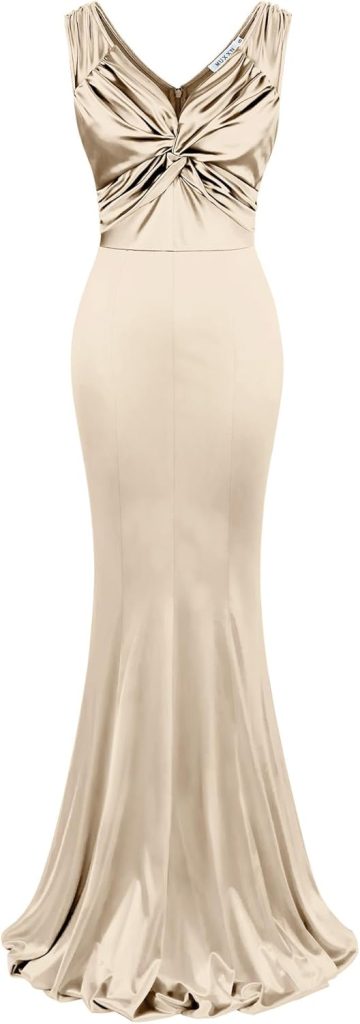 Product description RETTYGARDEN Women Sleeveless Long Satin Dress Elegant Mock Neck Maxi Dresses The video