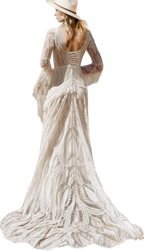 Product description Boho Lace Wedding Dress The video showcases the product in use.The video guides