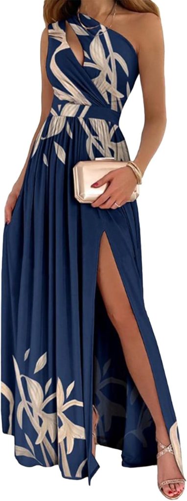 Product description ECDAHICC Womens One Shoulder Sleeveless Cutout Pleated Maxi Dress High Waisted High Slit
