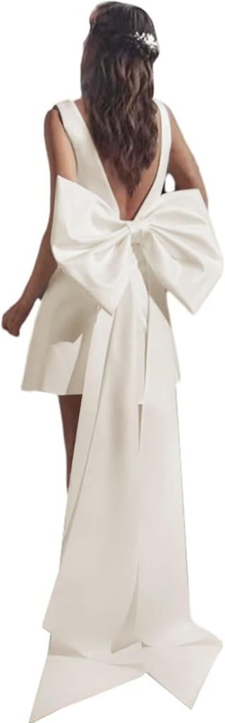 Product description V Neck Short Wedding Dress with Bow Satin Homecoming Dress for Women Satin
