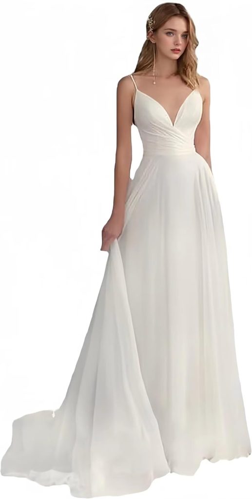 Product description Women’s Wedding Dresses for Bride 2024 V Neck Long A Line Lace Bride